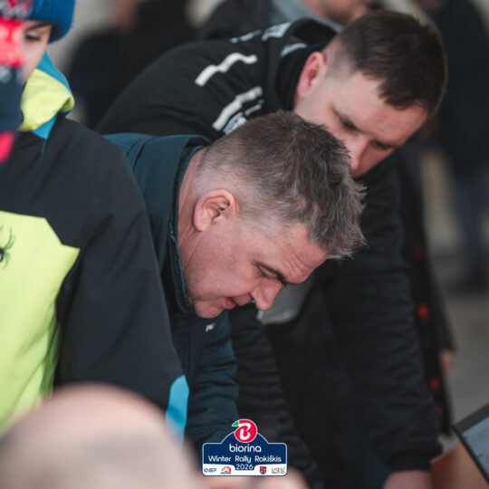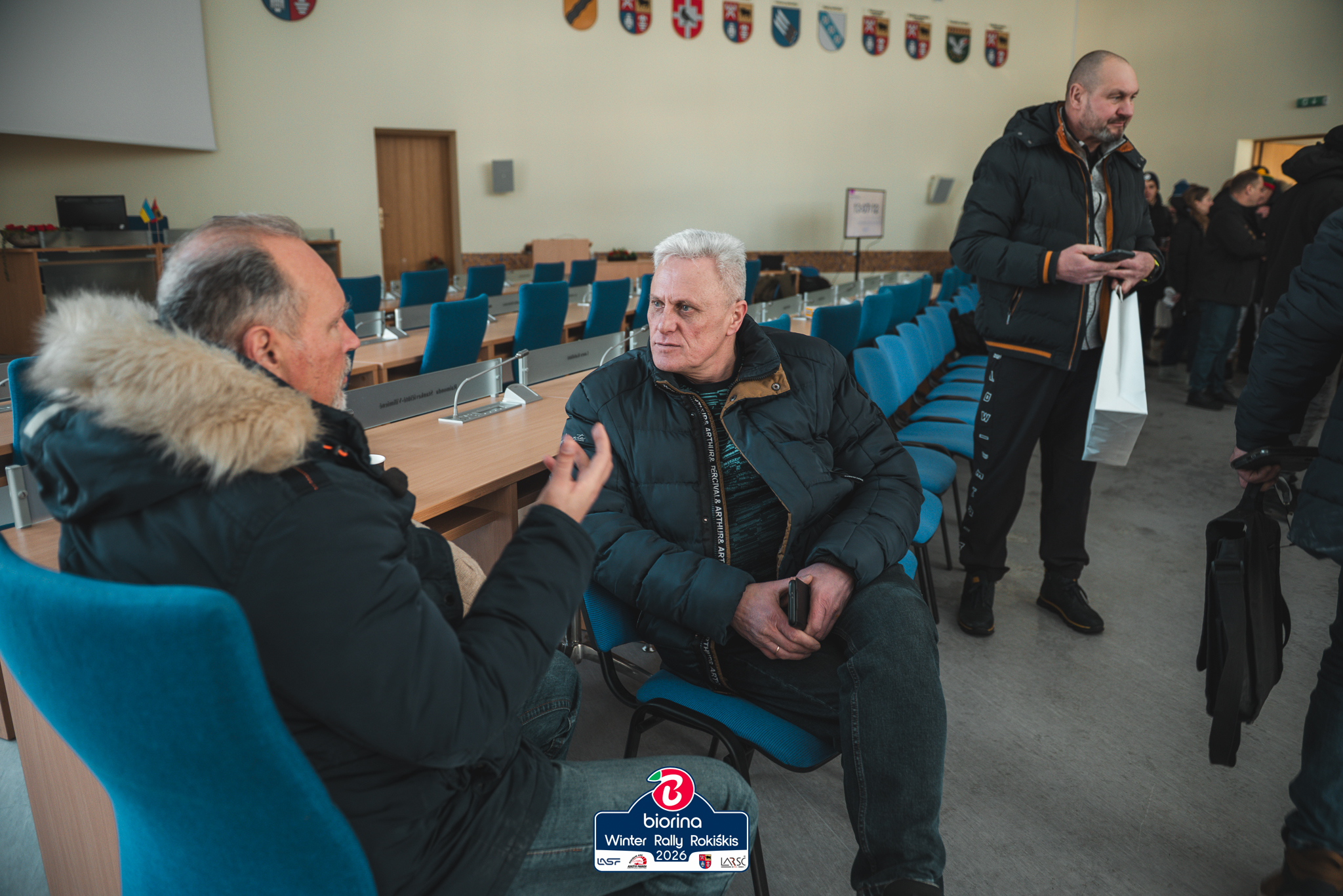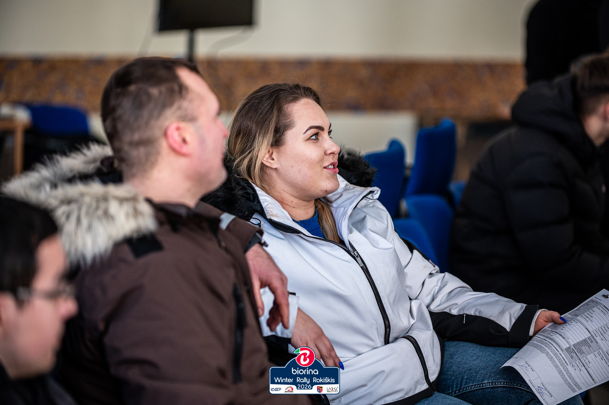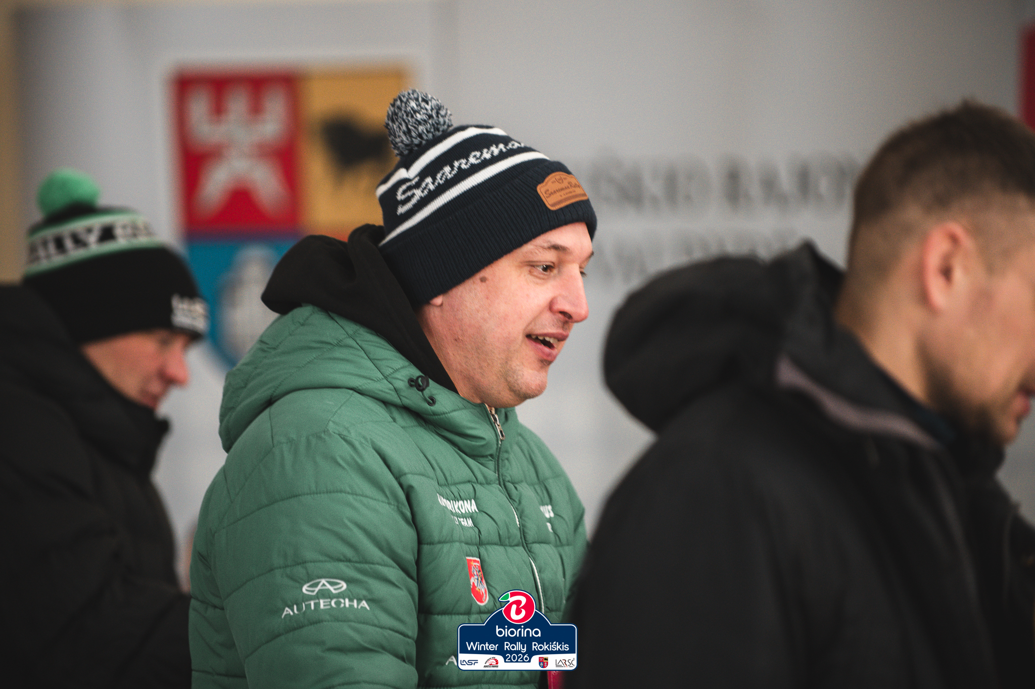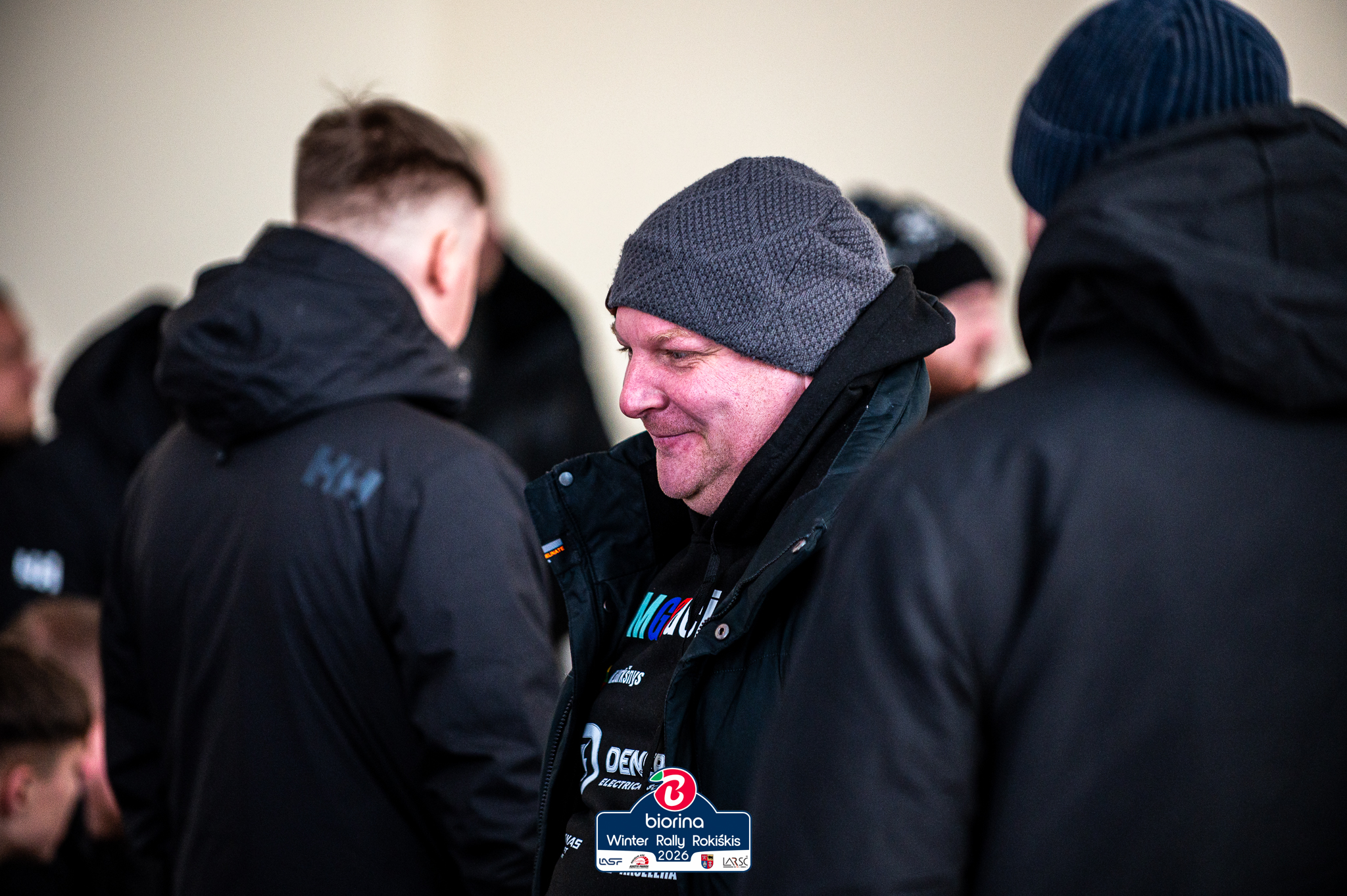 „Biorina Winter Rally Rokiškis 2026“ dalyviai, susitvarkę administracinius formalumus, jau gali vykti į greičio ruožus – šiandien numatytas jų susirašymas bei patikra.