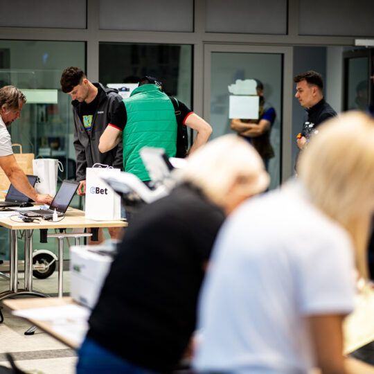 Ralio štabe darbą pradėjusioje administracinėje komisijoje dalyviai atsiėmė ne tik lipdukų ir startinių numerių komplektus, bet ir GPS sekimo įrangą. Ekipažai skubėjo šią užduotį atlikti kuo greičiau, kadangi iškart po to jie išvyko užsirašyti greičio ruožų stenogramas. Kadangi šių metų „CBet Rally Rokiškis“ varžybose dalyvių laukia net 17 greičio ruožų, iš kurių 15 važiuojami vieną sykį, ekipažams nekilo abejonių, jog tai užims nemažai laiko.