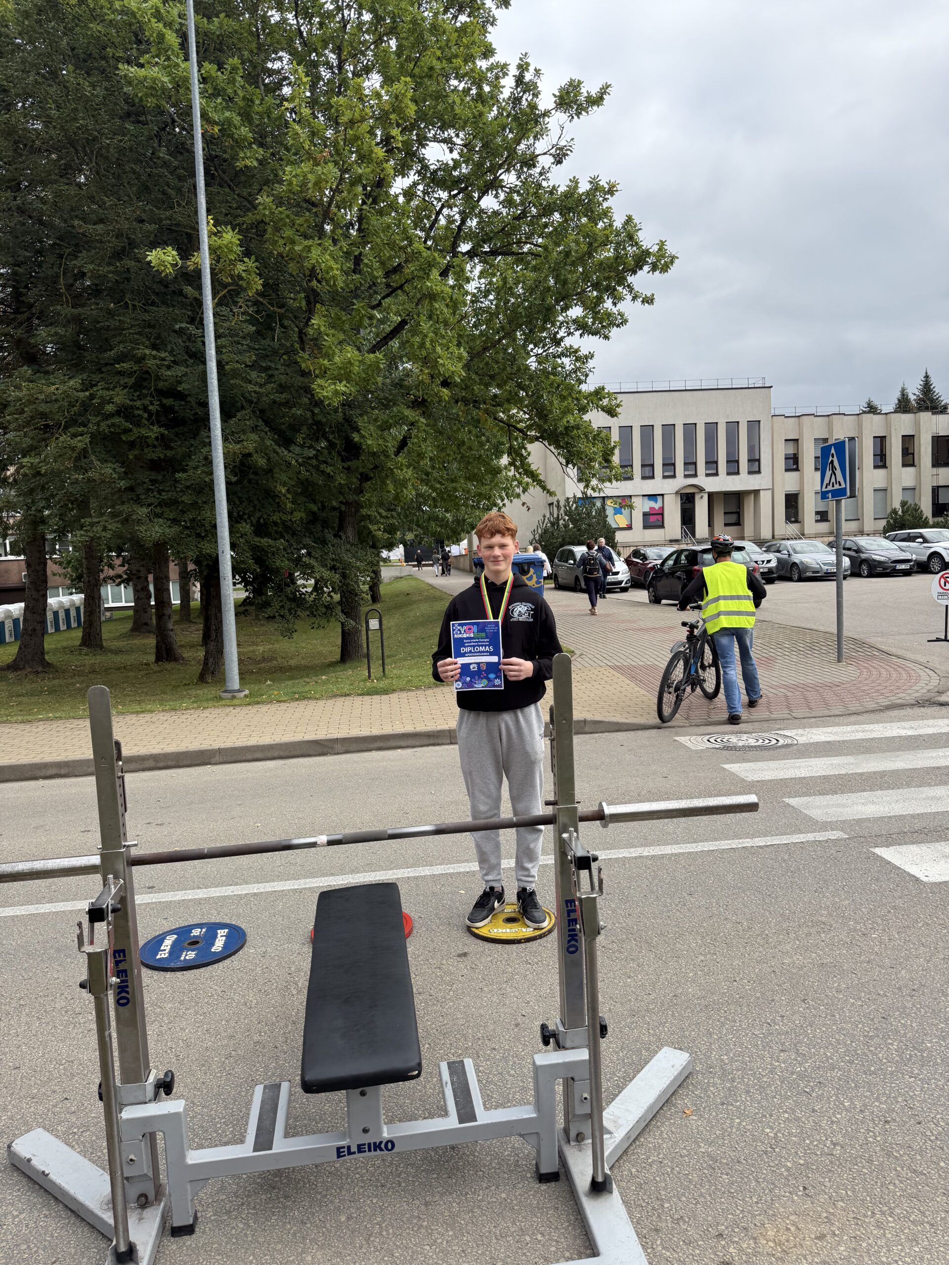 1 vieta – Airidas Meškauskas, spaudė 68 kg štangą 16 kartų.