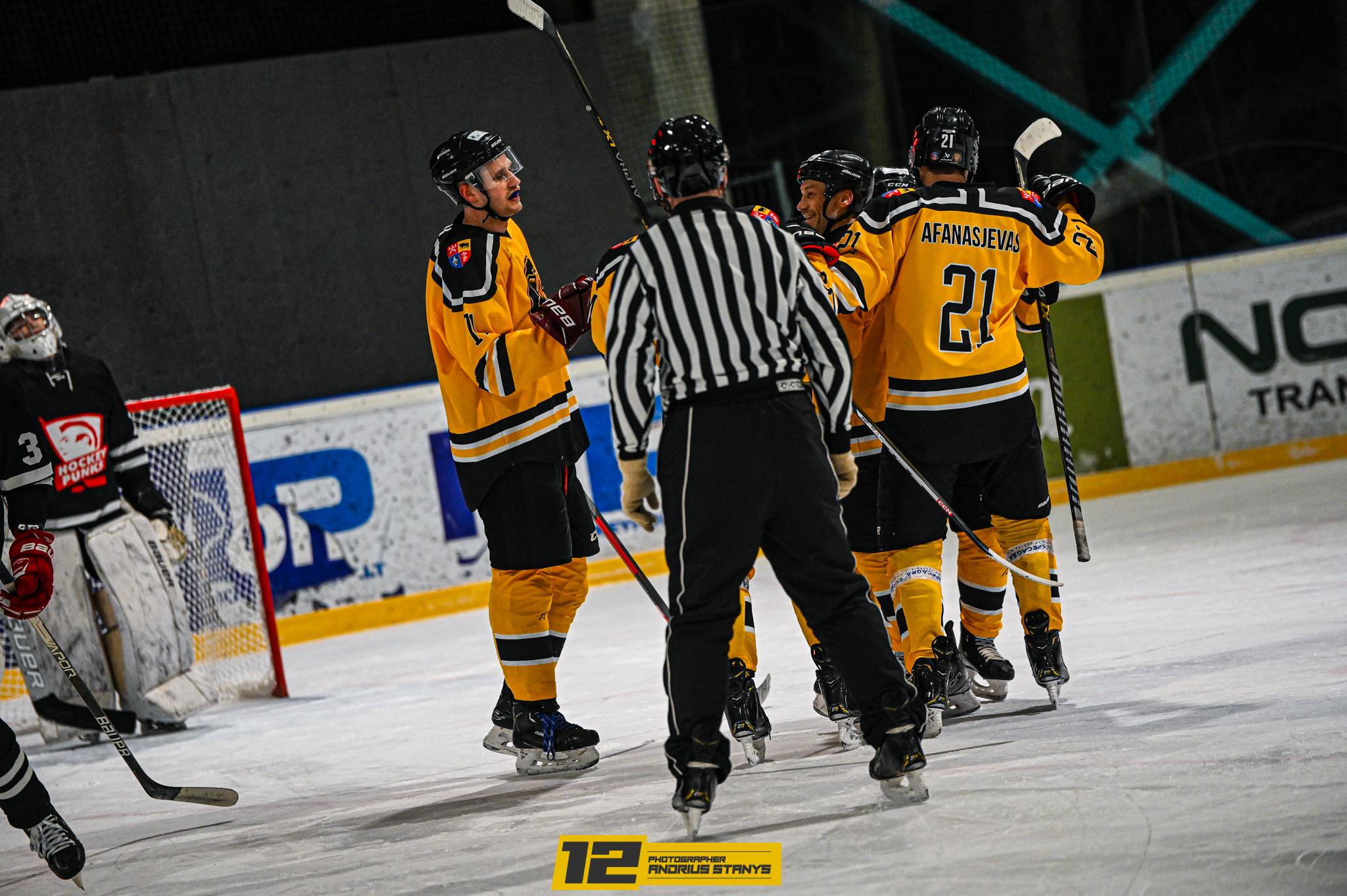 Rungtynės su Vilniaus „Hockeys Punks“ komanda prasidėjo gana apylygiai, pirmajame kėlinyje vienintelį įvartį į priešininkų vartus 3.31 kėlinio minutę pasiuntė Igoris Afanasjevas ir kėlinys baigėsi 1:0 „Grizlių“ naudai. Antrajame kėlinyje „Grizliai“ pelnė dar du įvarčius, o trečiajame jau sugrįžo į ritmą ir rungtynės užbaigė rezultatu 8:2.