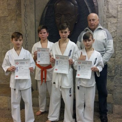 Anykščiuose vyko karatė kiokušin kvalifikaciniai egzaminai. Kvalifikaciją pakėlė keturi „Samurajaus“ klubo sportininkai. 10 kyu pelnė Bernardas Tunaitis, Laurynas bei Liutauras Fiodorovai, 9 kyu – Gvidas Galvydis.