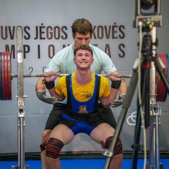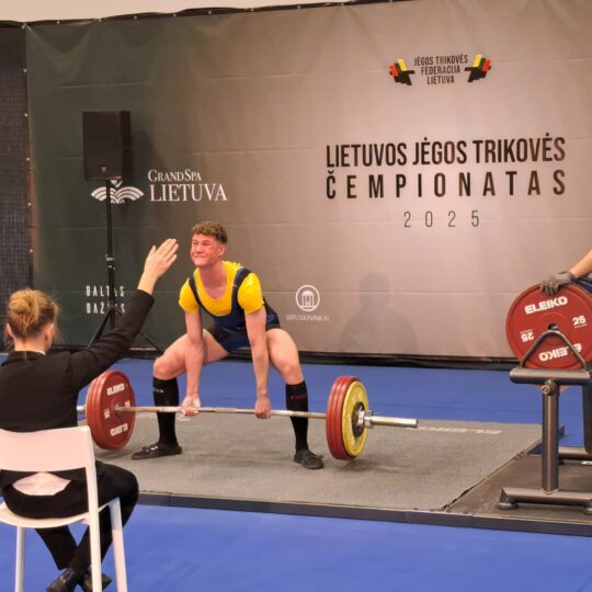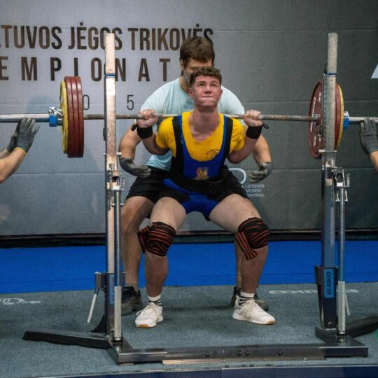 - Domas Vilkevičius (Europos jėgos trikovės čempionato Čekijoje 1 vietos laimėtojas, Pasaulio jėgos trikovės čempionato Kosta Rikoje 3 vietos nugalėtojas) pritūpė su 266 kg štanga. Lietuvos rekordas pagerintas 0,5 kg (senasis rekordas – 265 kg – užfiksuotas 2016 m. ir nesikeitė 9 metus). Tai jau 5 Domo Lietuvos rekordas šiais metais. Asmeninis rezultatas pagerintas 11 kg – 1 vieta. Spaudimo veiksmas – 160 kg – 1 vieta. Atkėlimo veiksmas – 252,5 kg – 1 vieta. Suma – 678,5 kg (pagerinta 11 kg), bendroje įskaitoje – 1 vieta. Absoliučioje jaunių amžiaus grupės įskaitoje – 1 vieta.