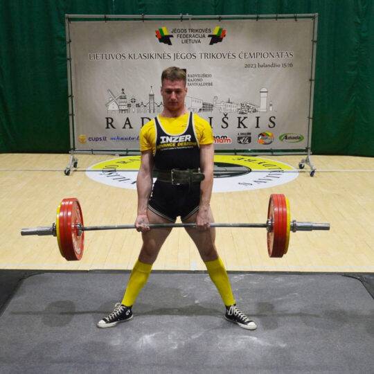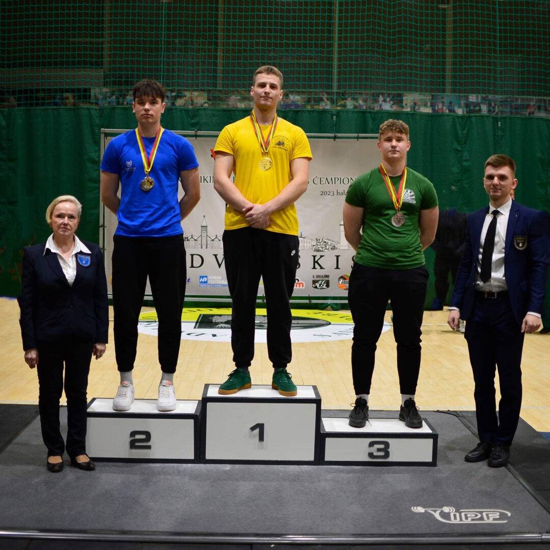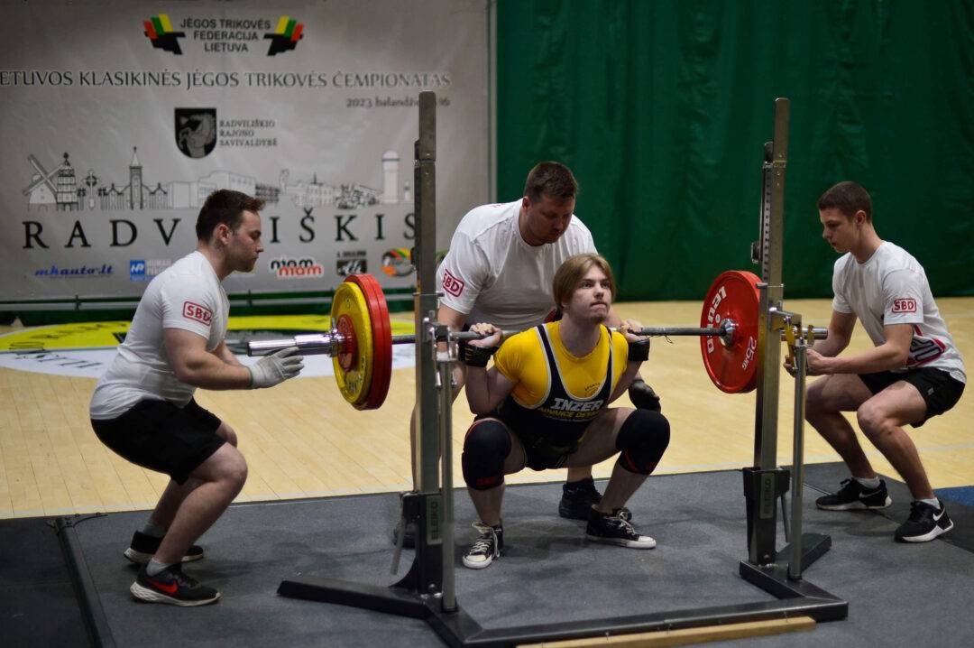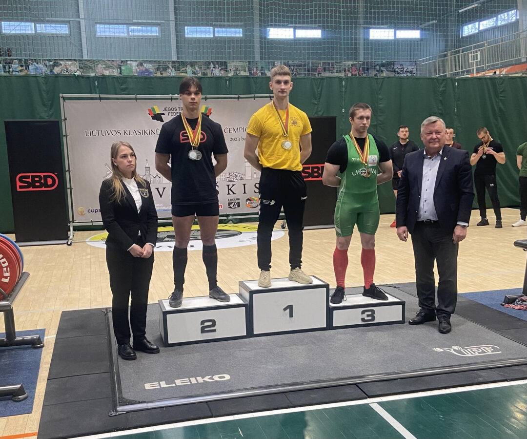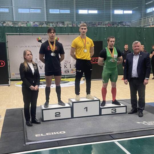 Karolis Jurevičius (svorio kategorija iki 105 kg, jaunimo grupė) pritūpė su 185 kg svoriu, spaudė 115 kg, atkėlė 225 kg ir iškovojo pirmąją vietą.