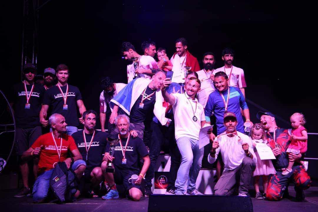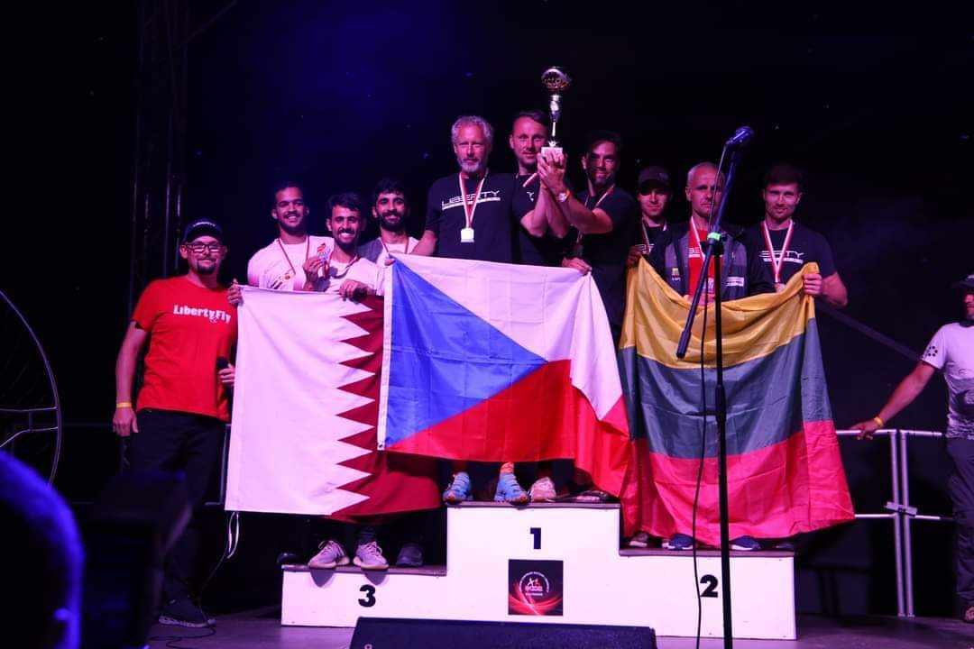 Estafetėse dalyvavo aštuonios komandos po tris pilotus. Trijuose kvalifikaciniuose skrydžiuose geriausią rezultatą parodė Čekijos pirmoji rinktinė, o Lietuvos atstovai ir Kataro rinktinė surinko vienodai taškų, bet dėl pastarosios komandos uždirbtų baudos taškų lietuviai užėmė antrąją vietą. Finaliniame skrydyje lietuviai tik dviem sekundėmis nusileido Čekijos rinktinei ir bendroje įskaitoje užėmė antrąją vietą.