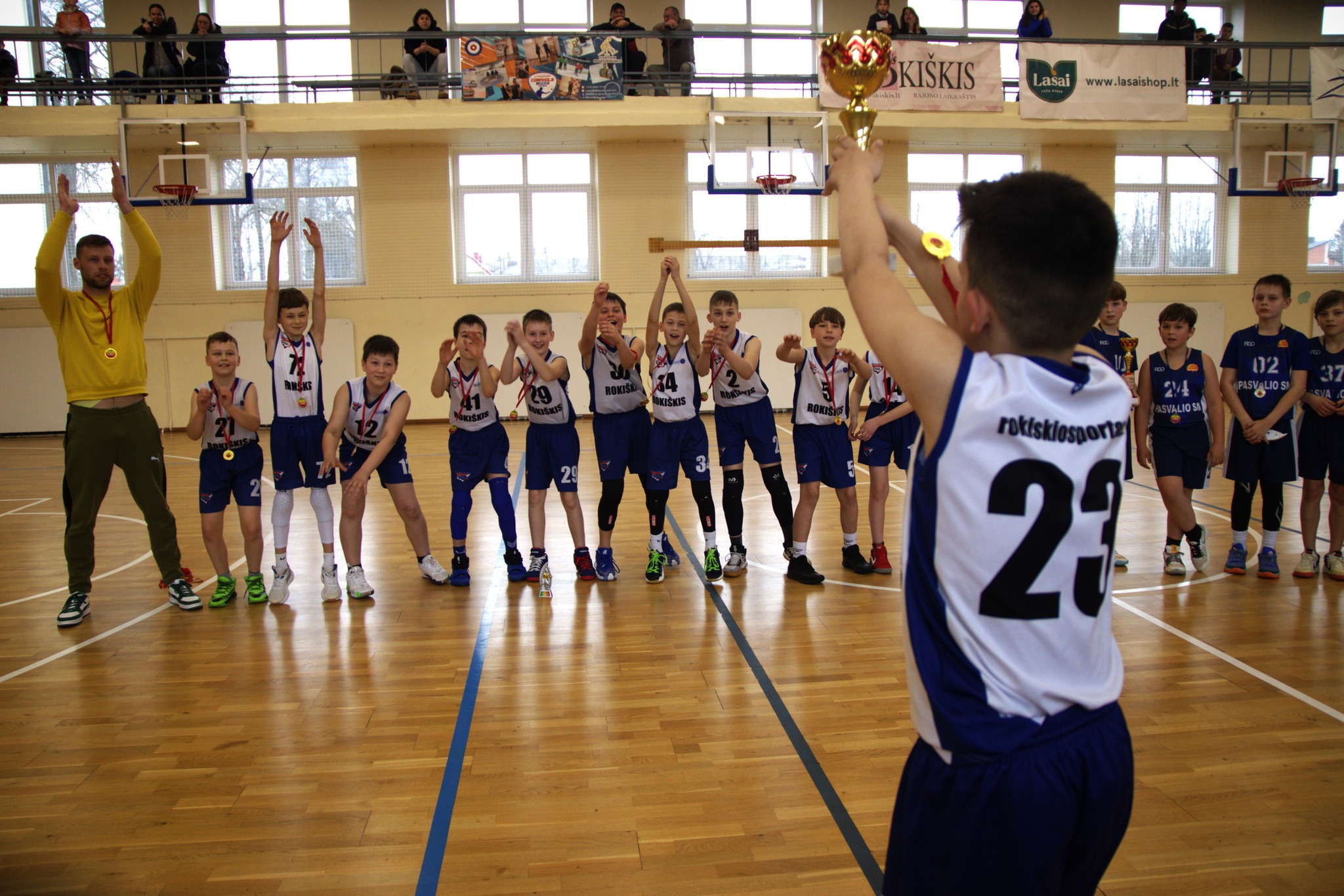 Rokiškyje vykusiose finalinėse Mažų miestelių vaikų krepšinio lygos U11 diviziono kovose Rokiškio krepšininkai įveikė pasvaliečius ir pasidabino Mažosios taurės pirmosios vietos medaliais.
