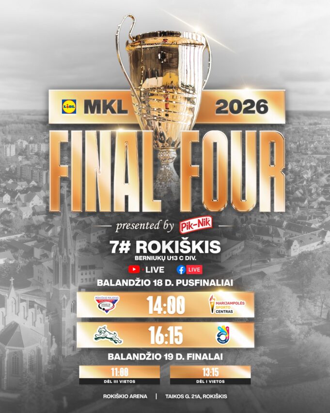 Jau šį savaitgalį, balandžio 18–19 dienomis, Rokiškis taps Lietuvos moksleivių krepšinio epicentru. „Rokiškio arenoje“ vyks ilgai lauktos „Lidl MKL 2026“ berniukų U13 C diviziono finalinio ketverto kovos, kuriose dėl medalių grumsis pajėgiausios jaunųjų krepšininkų komandos.