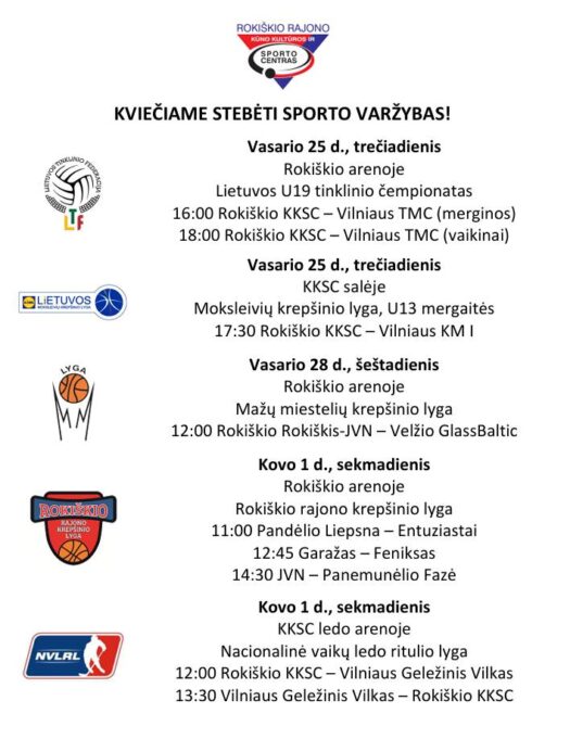 Rokiškio rajono kūno kultūros ir sporto centras kviečia stebėti sporto varžybas!