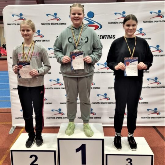 Mergaičių grupėje pirmąją vietą iškovojo Goda Milaknytė, kuri 2 kg svorio rutulį nustūmė 9,91 metro, o trečia šioje rungtyje liko Brigita Butylkinaitė, įrankį nustūmusi 8,78 metro.