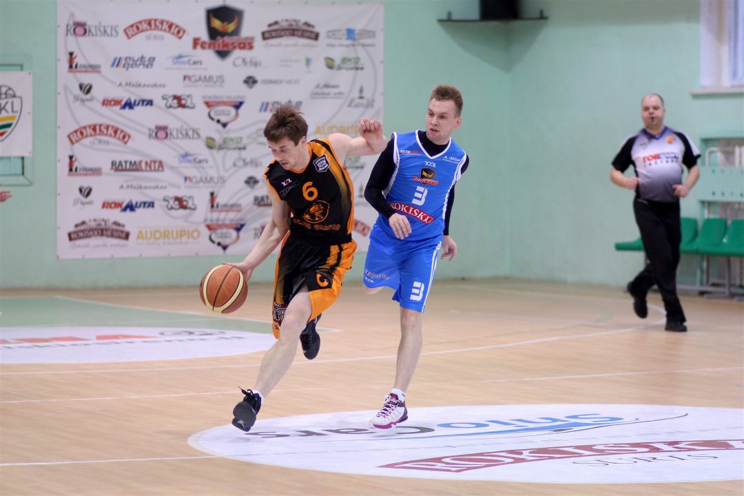Pirmajame sekmadienio susitikime netrūko atkaklios kovos iki paskutinių sekundžių. SK „Obeliai-Alfos idėjos“ išplėšė pirmąją pergalę pirmenybėse. Obeliečiai rezultatu 64:62 nugalėjo „Pandėlio“ ekipą. Šioji baudos metimais galėjo išlyginti rezultatą, tačiau visi skriejo pro šalį.