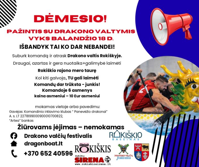 Balandžio 18 d. Rokiškis kviečia visus aktyvaus laisvalaikio entuziastus į išskirtinį renginį – pažintį su drakono valtimis.