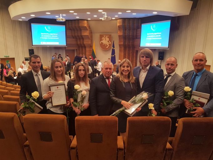 Kovos menų sporto trenerė Gita Čečienė ir jos auklėtinė Gitana Kasparavičiūtė apdovanotos ministro pirmininko Sauliaus Skvernelio pasirašytomis padėkomis ir valstybine vėliava. Padėkas teikė pats premjeras.