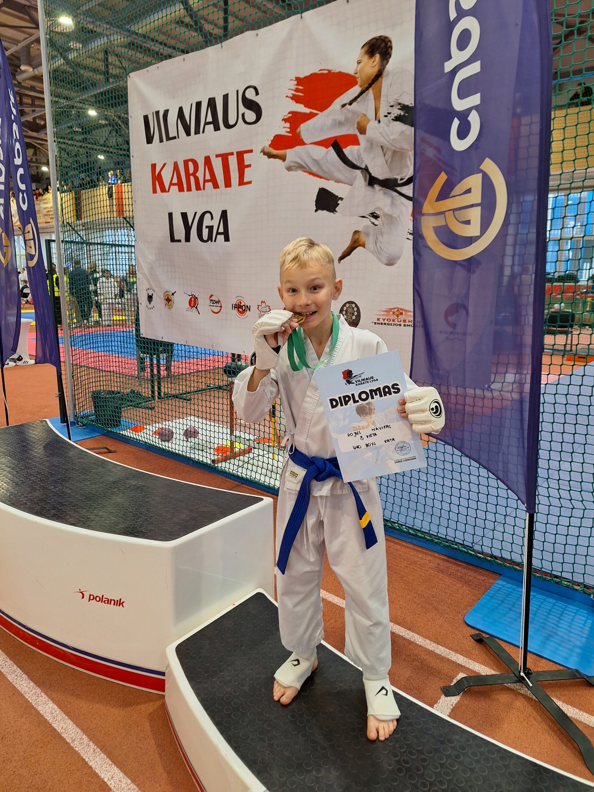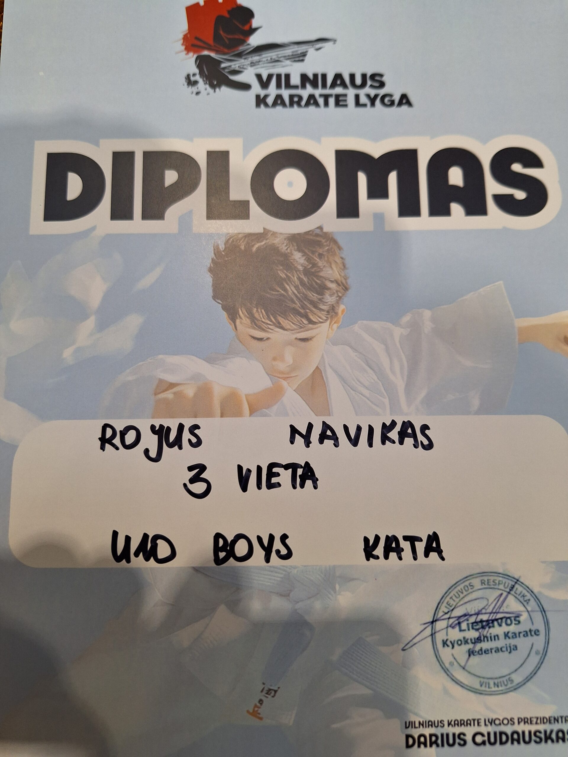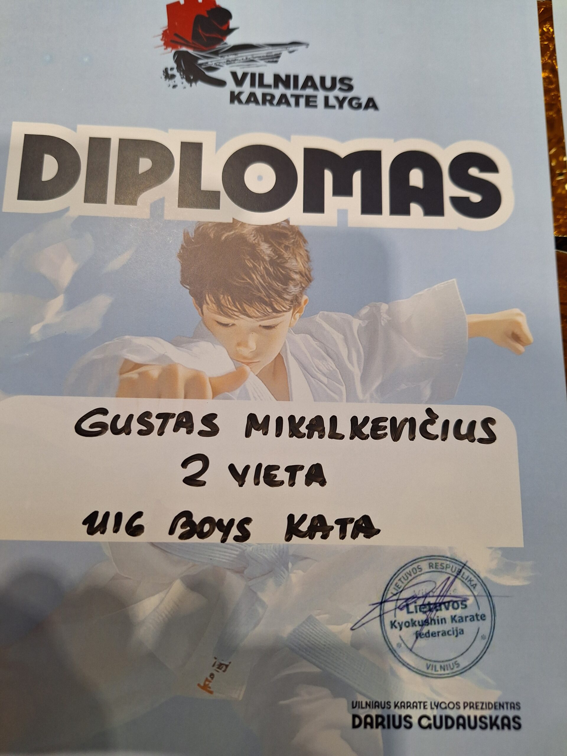Gustas Mikalkevičius šešiolikamečių grupėje kata rungtyje laimėjo antrąją vietą, kumitė rungtyje svorio kategorijoje iki 70 kg – trečiąją.