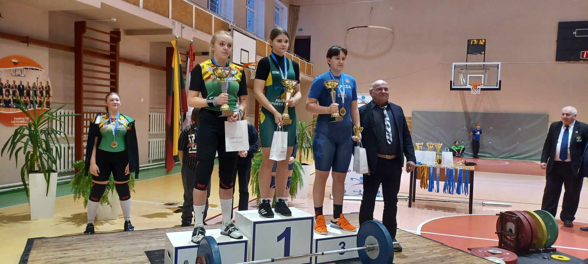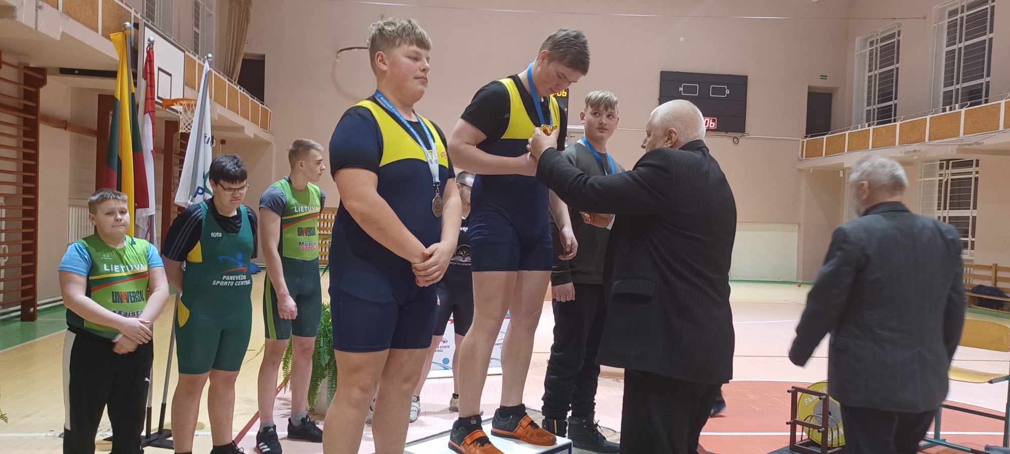 Gimę 2012 metais ir jaunesni sportininkai varžybose rungėsi pagal Sinklerio skalę. Ąžuolas Dūdėnas užėmė devintąją vietą, surinkęs 78,5 taško. Dainotas Valeišis po rovimo veiksmo buvo trečioje vietoje, deja, stūmimo veiksmą atlikdamas gavo traumą ir liko 6-oje vietoje, surinkęs 92,5 taško.