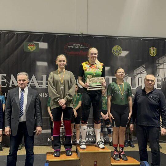 Rokiškietė Germantė Laucytė pagerino asmeninį rekordą ir svorio kategorijoje iki 59 kg iškovojo antrąją vietą. Jos dvikovės rezultatas – 140 kg. Pagal Sinklerio skalę tarp mergaičių ji taip pat užėmė antrąją vietą.