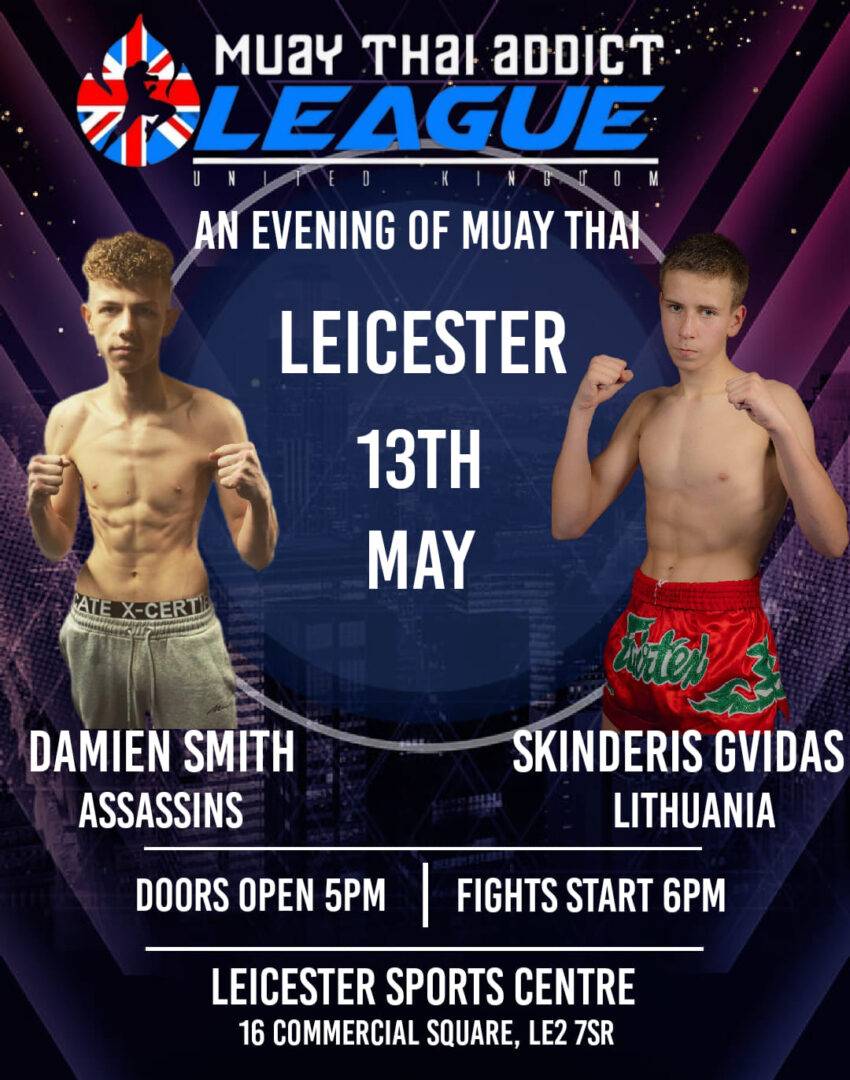 Gegužės 13 d. Lesteryje (Didžioji Britanija) vyko „Muay Thai Addict league“ turnyras. Jame dalyvavo sporto klubo „Tornado/Thai Tornado“ kovotojas Gvidas Skinderis. Kovos formulė – 5 raundai po 1,5 min. Atkaklioje kovoje po penkių raundų taškais pergalė atiteko Didžiosios Britanijos kovotojui. Tai buvo puiki patirtis tarptautinių varžybų ateities startams.