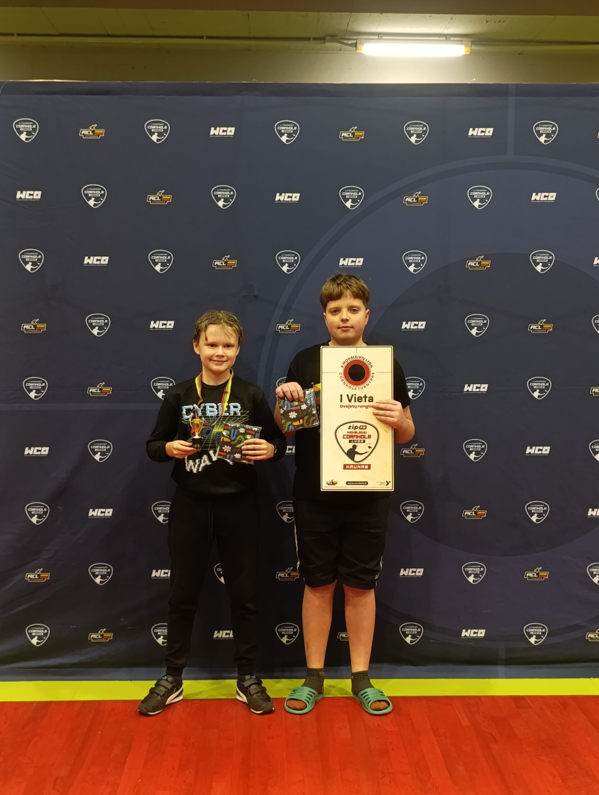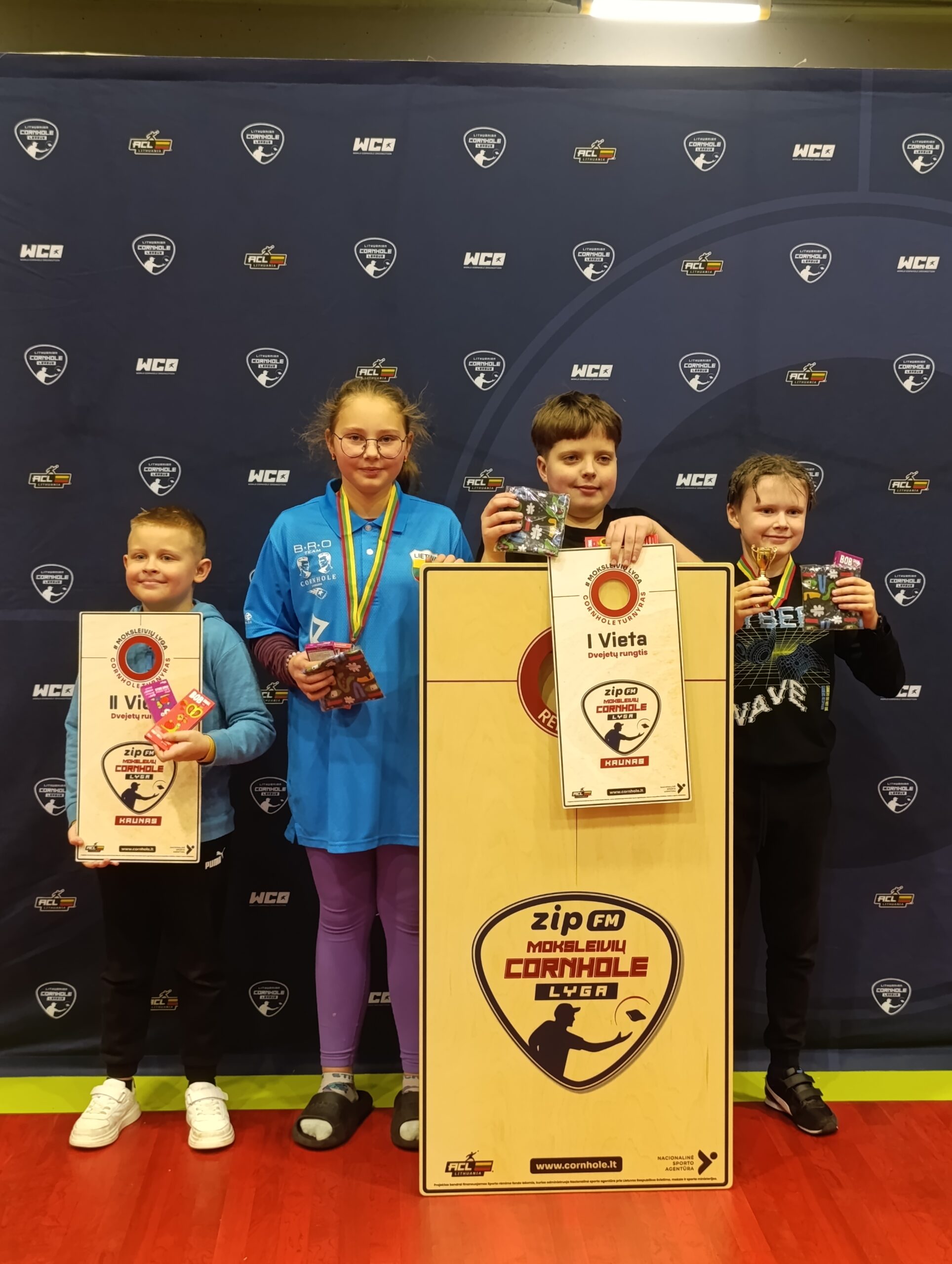 Dvejetų rungtyje pirmąją vietą laimėjo Dainotas Valeišis ir Kasparas Kavoliūnas, antri liko Amelija Valotkaitė ir Dominykas Mišeninas, treti – Biržų „Atžalyno“ mokyklos auklėtiniai.
