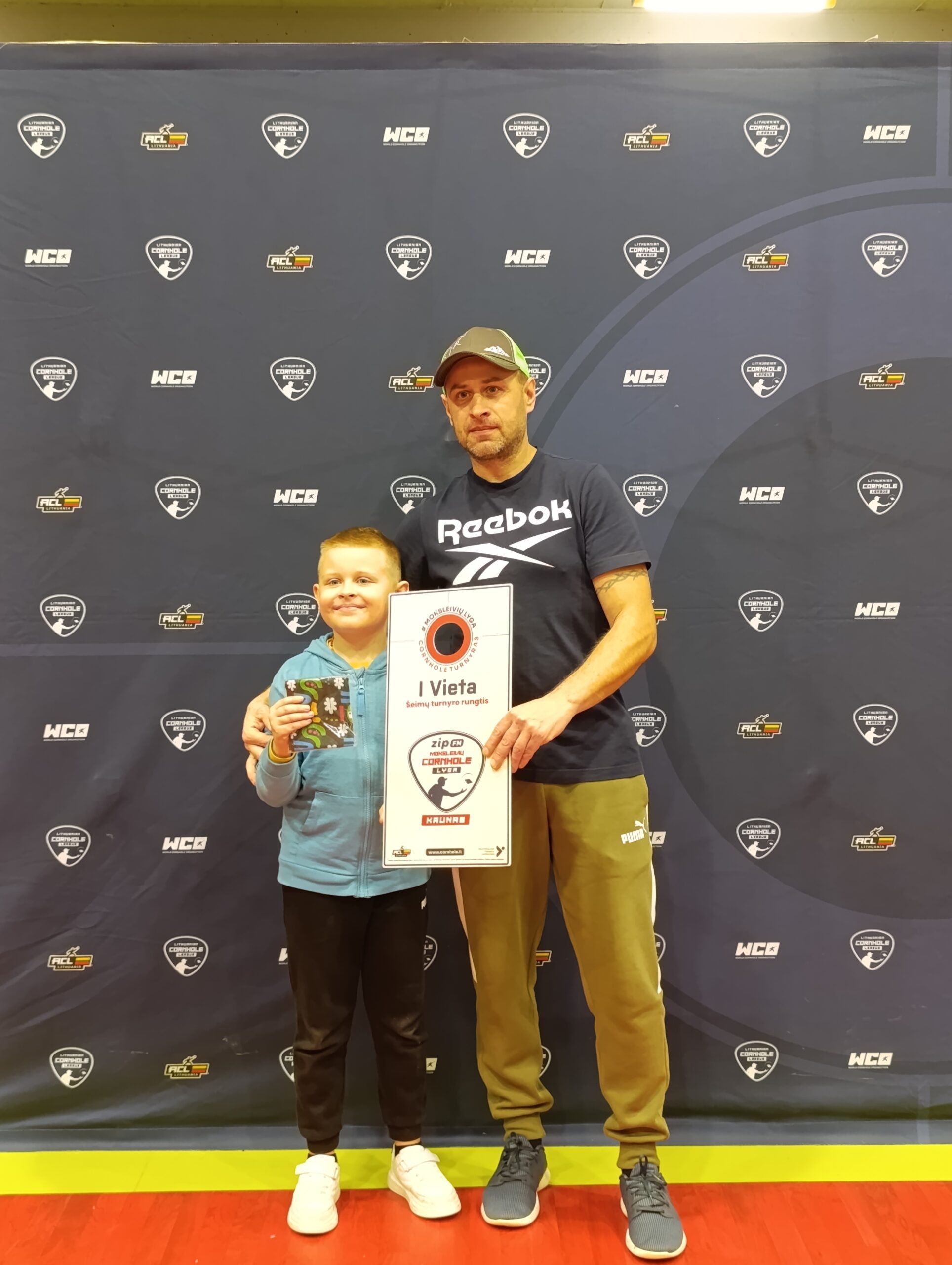 Šeimų rungtyje (tėtis, sesuo, brolis ir t. t.) dalyvavo ir pirmąją vietą laimėjo Alius Mišeninas su sūnumi Dominyku.