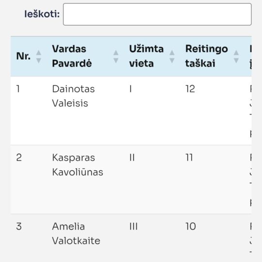 Asmeninėje rungtyje pirmąją vietą laimėjo Dainotas Valeišis, antras buvo Kasparas Kavoliūnas, trečia – Amelija Valotkaitė.