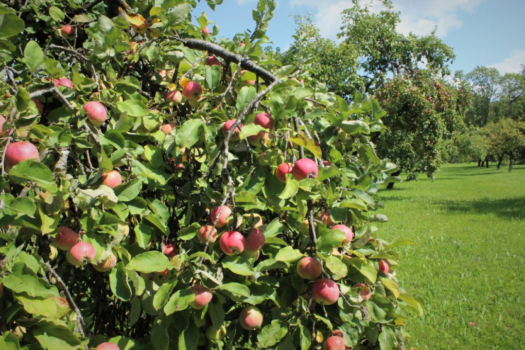 Pernai dvaro sodas net linko nuo obuolių gausos. „Buvo tikrai didelis derlius, todėl turbūt pirmą kartą liko ir mūsų poreikiams – spaudėme sultis, daugiau kaip šimtą litrų išsispaudėme ir visus metus turėjome kuo vaišinti dvaro svečius, nereikėjo pirkti. Visus toks sumanymas ir vaišės iš dvaro sodo labai žavėjo. Deja, šiais metais obelys apytuštės, obuolių mažai, todėl bus sunku konkuruoti su miestiečiais“, – liūdnai pastebi N. Šniokienė.