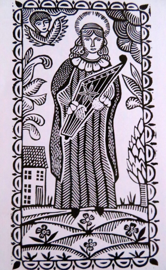 2019 m. kalendoriaus tematika – šventųjų paveikslai, tad kiekvienam mėnesiui skirtas vis kitas šventojo atvaizdas. Pavyzdžiui, vasario mėnesio lapelyje pavaizduota šv. Agota, kovo – šv. Kazimieras. „Kalendoriaus lapelio apačioje pateikiami glausti tekstai apie tą šventąjį. Šį darbą atliko klebonas, o mano atsakomybė – iliustracijos. Jos atliktos medžio ir linoraižinių technika. Jų specialiai šiam leidiniui kurti nereikėjo, juos atsirinkau iš ankstesnių darbų. Tiesa, abu apsitarėme, kokius šventuosius vaizduoti“, – sumanymą komentavo menininkė.