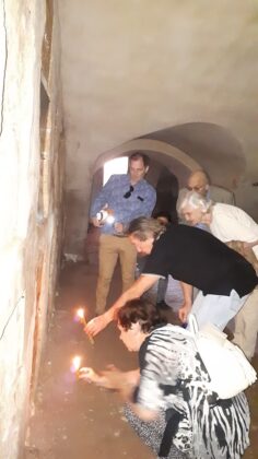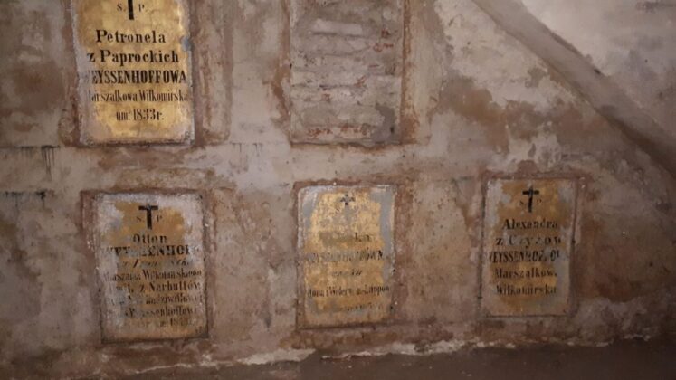 Bažnyčios rūsiuose prie kriptų, kur palaidoti Vaisenhofai, svečiai sustingo. Žvakių šviesoje tylėdami stengėsi atidžiai apžiūrėti kiekvieną užrašą, prisiliesti prie mūro. Kas dėjosi jų širdyse, žodžiais neapsakysi. Išėję į šventorių grafų palikuonys ilgai stoviniavo tyloje, lyg bandydami atmintyje į vieną visumą užkonservuoti ne tik vaizdinius, bet ir patirtus jausmus.