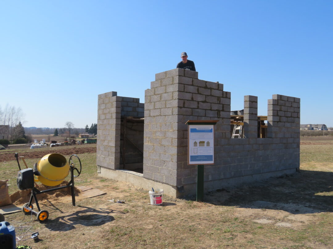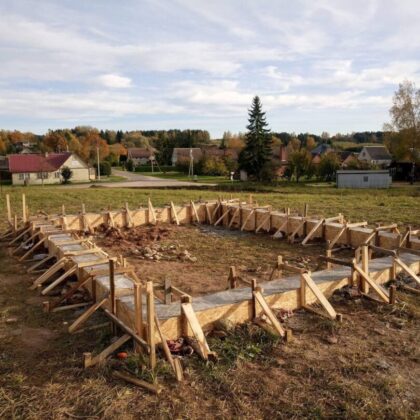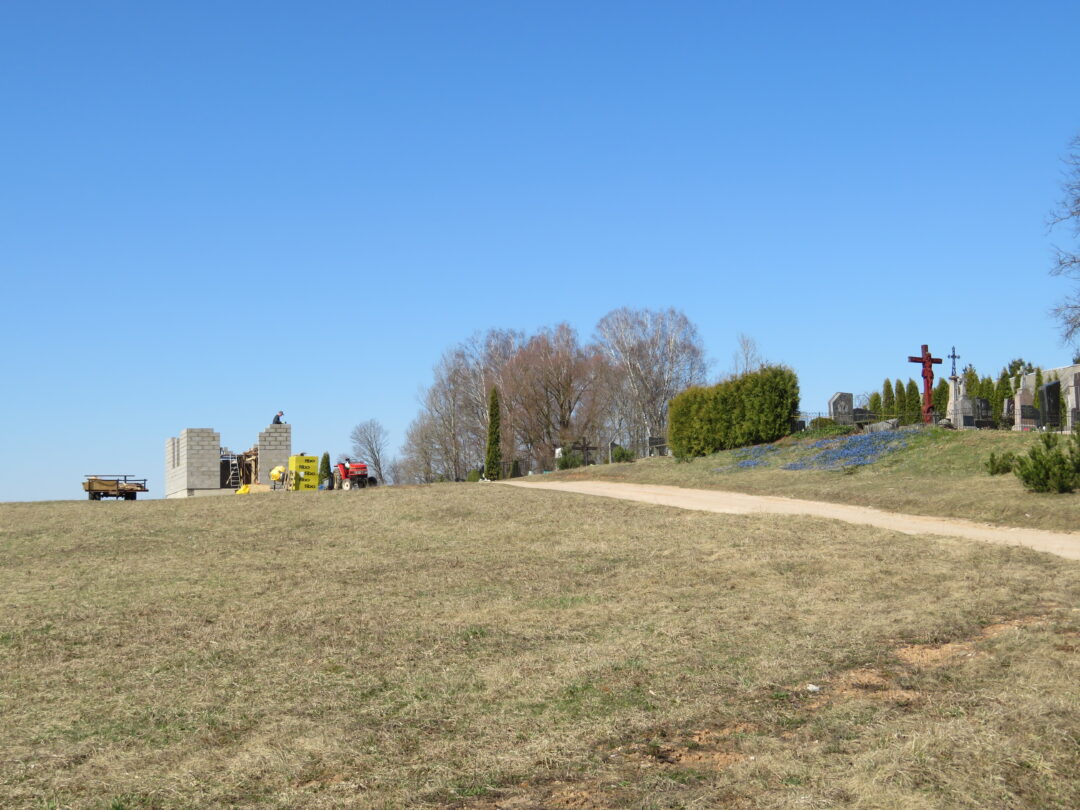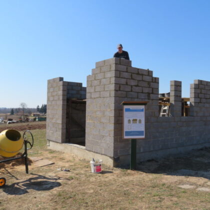 Kalvių kaime, šalia kapinių, ant kalnelio, sparčiai kyla koplyčios sienos. Net nesitiki, kad gręžtiniai pamatai padėti tik praėjusių metų spalio mėnesį.