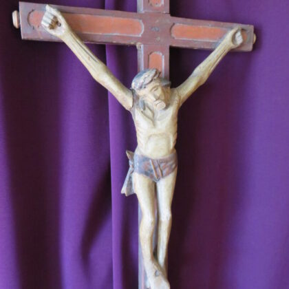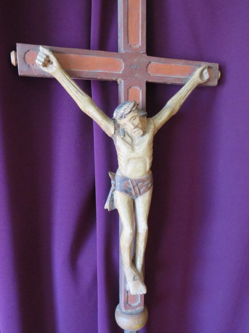 Kalvių kaimo bendruomenės pirmininkė Stasė Gruoblienė rodo 1967 m. darytą laidotuvių nuotrauką, kurioje matosi prieš eiseną nešamas kryžius. Pasirodo, jis priklausęs kaimui. Kaip ir matyti nuotraukoje, būdavo nešamas per laidotuves arba kabodavo namuose, kuriuose vykdavo gegužinės pamaldos („mojava“). Kitaip tariant, būdavo saugomas „pas žmones“. Vėliau pasimetė.