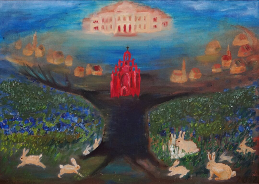 – Galima išskirti laikotarpius. Buvo metas, kai man patiko mėlyna spalva. Turėjau mėlynų švarkų, sijonų, suknelių. Paskui perėjau prie žemės spalvų: rudos, pilkos. Kad raudona man tinka ir patinka, sužinojau tik tuomet, kai ruošėmės siūti grafienių sukneles ir rinkomės medžiagas. Man pasiūlė sodriai raudoną. „Ne, ne, nesu raudono rūbo turėjusi“, – sakiau. Bet prie veido tokia spalva tiko. Nuo to laiko man ji patinka. Mano kolegės, su kuriomis susitinkam pas dailininką Raimondą Gailiūną, giria sodrias, ryškias mano paveikslų spalvas… Nemėgstu blankių. Man nepavyksta nutapyti blankiai. Tik pirmas darbelis toks buvo. Kai 2017 m. Krašto muziejuje vyko mano pirmoji personalinė paroda (kartu su dailininko Arūno Augučio keramika), to pirmojo paveikslo neatnešiau. Renginį vedęs Arūnas nusistebėjo – kaip šitaip galima! Pirmoji paroda, o joje nėra pirmojo paveikslo! Taigi dabar atnešiau parodyti. Man atrodo, jis nėra baisingas (šypsosi – aut. past.).