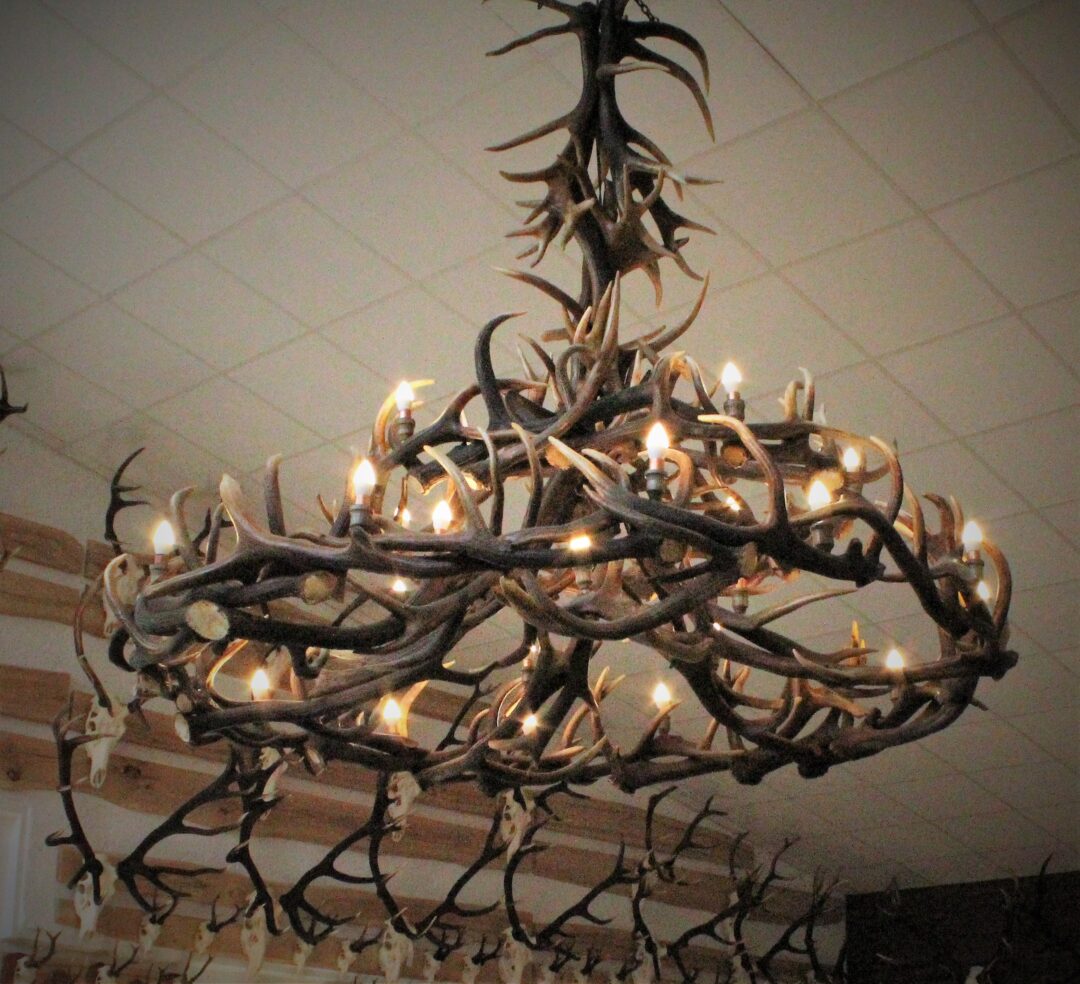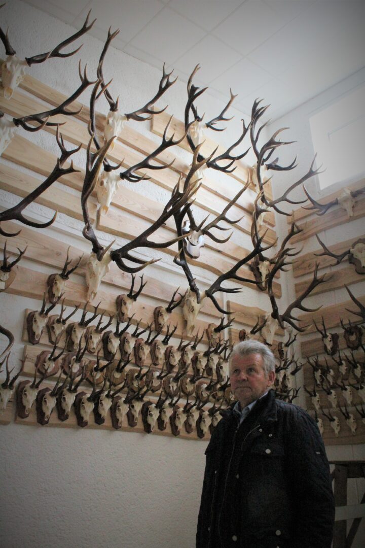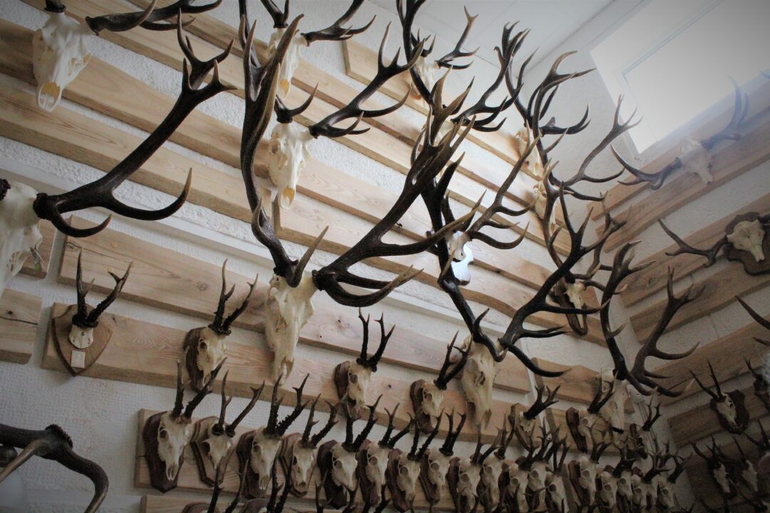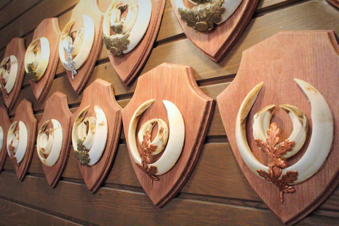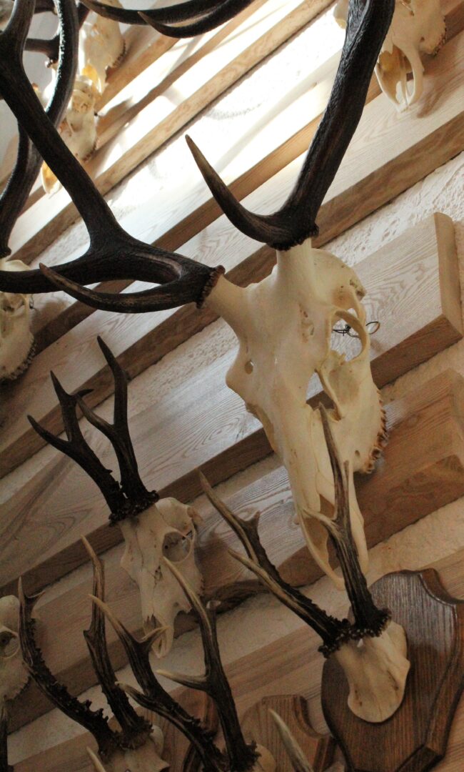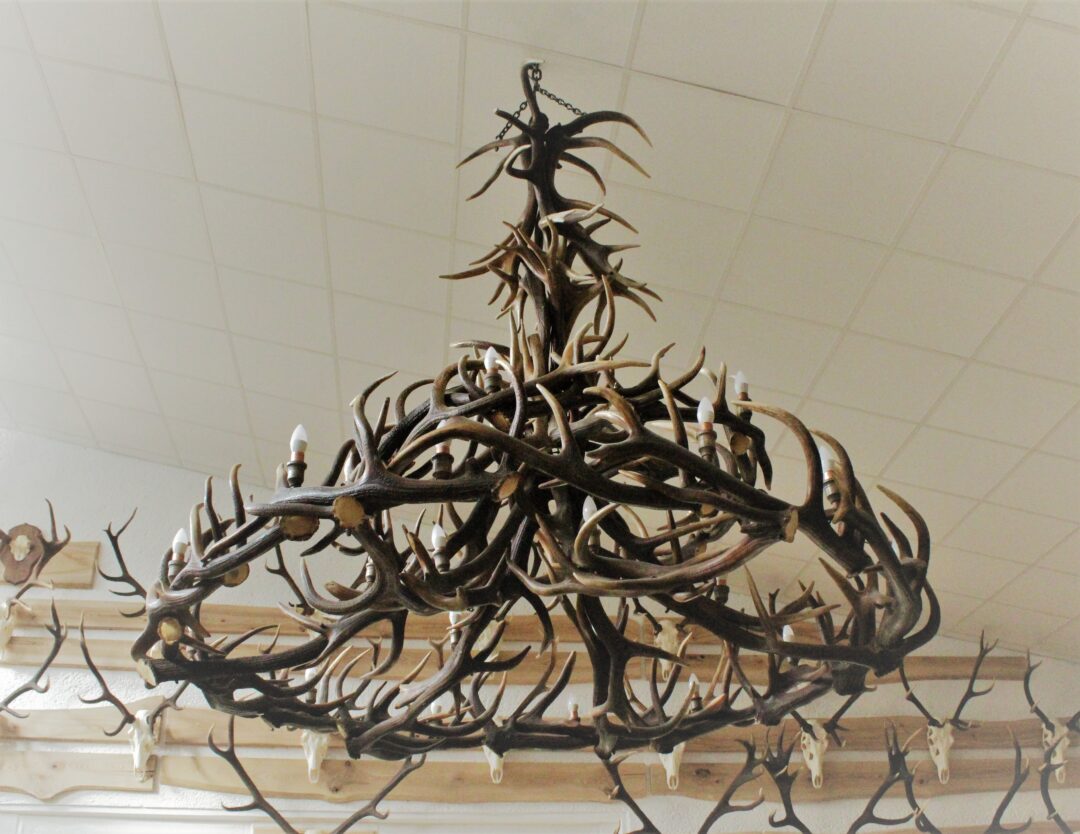 Ekspozicijos patalpas puošia įspūdingo dydžio šviestuvas iš ragų. Tik J. Smalinskas skuba paaiškinti, kad šviestuvas pagamintas ne iš trofėjinių, o šiaip iš numestų ir surastų tauriųjų elnių ragų. „Rasti ragai – ne trofėjus. Sunešė juos daug kas, o šviestuvą iš jų pagamino Telšių bendrovė“, – paaiškina medžiotojas.