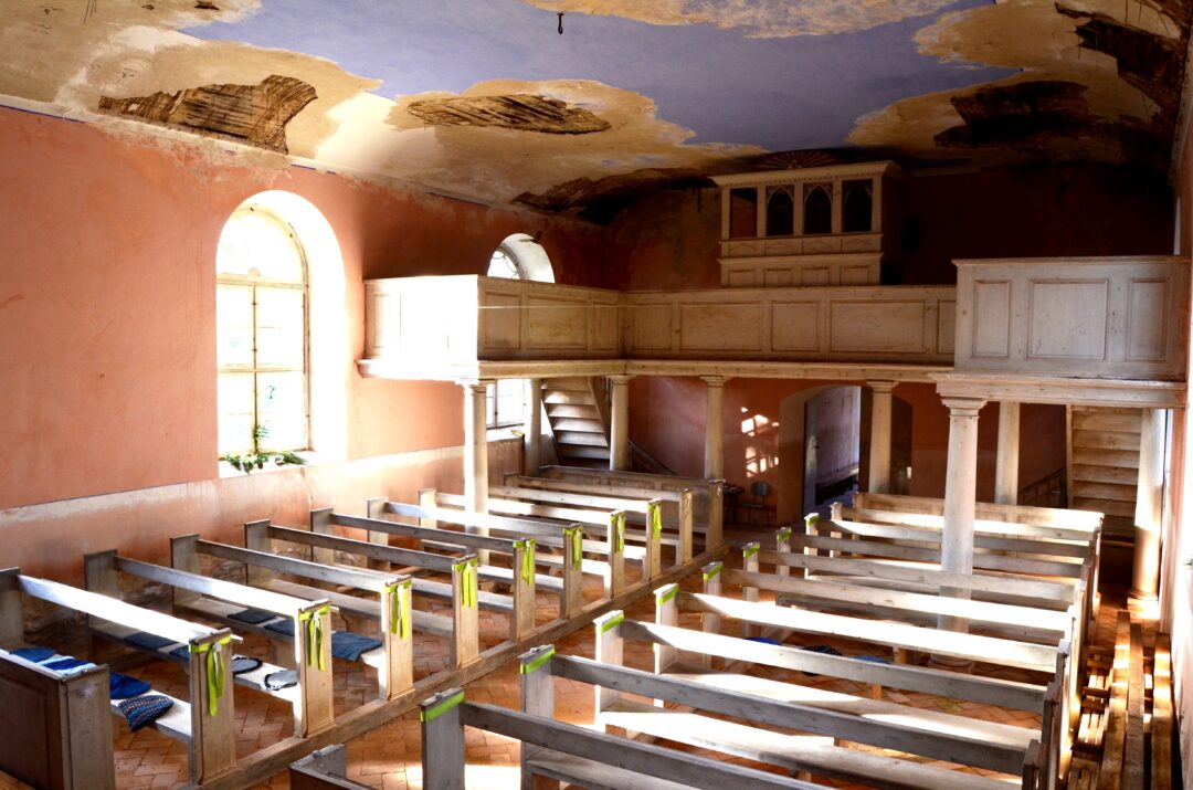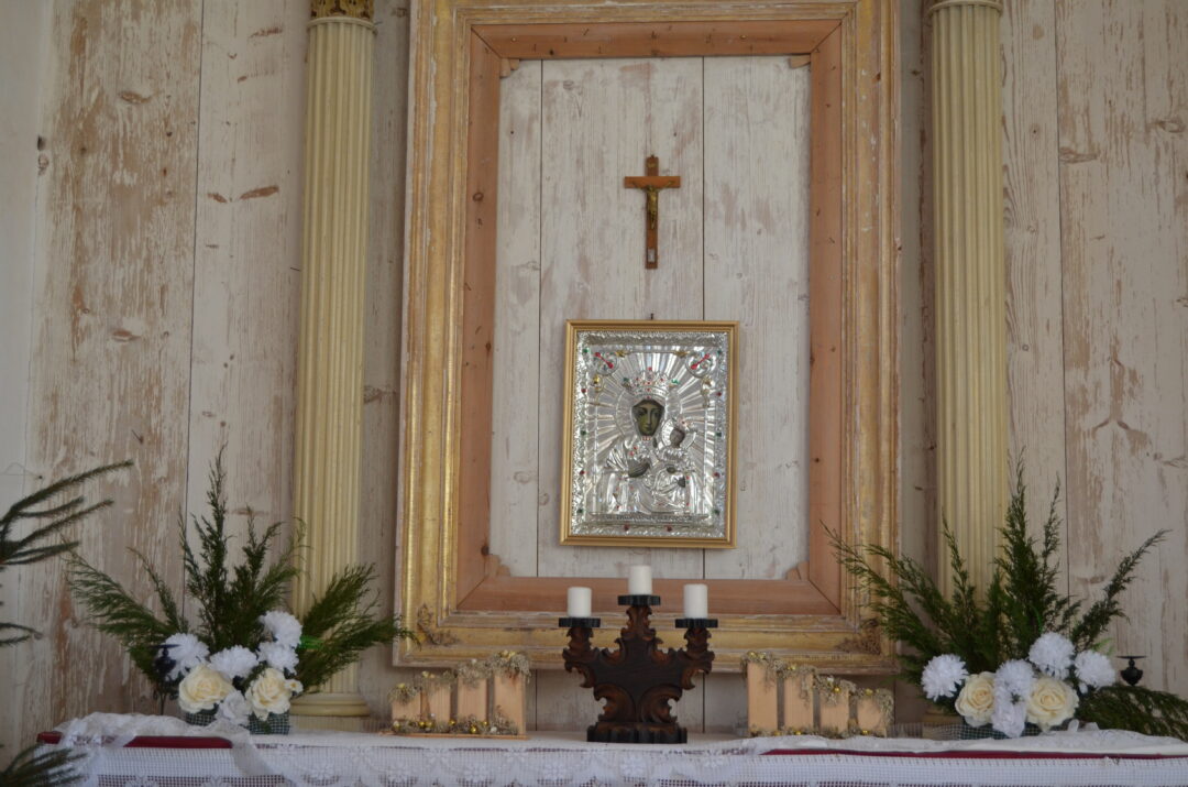 Vargonais nebegrojama, nes mechanizmai išmontuoti, o varpą pasiekti taip pat sudėtinga, nes grindys sutrešusios. Bažnyčios vidaus rožinio atspalvio plytų grindys – amžinos, puikiai išsilaikiusios nuo pat grafų Rutenbergų statybų. Kelis šimtmečius puikiai išsilaikė ir nemažai kitų šventovės atributų: karsto stovas, krikšto indas, aukų kapšelis, altorių puošiančios ikonos. Valentina apgailestauja, kad romantiškos bažnyčios istorija gali baigtis nelinksmai. Mat vasario 20 d. paskelbtas jos žemės sklypo aukcionas. Jeigu Valentina su šeima jo neįstengs nupirkti, jį įsigijęs žmogus, niekaip nesusijęs su šiuo kraštu, maldos namų gali neišsaugoti.
