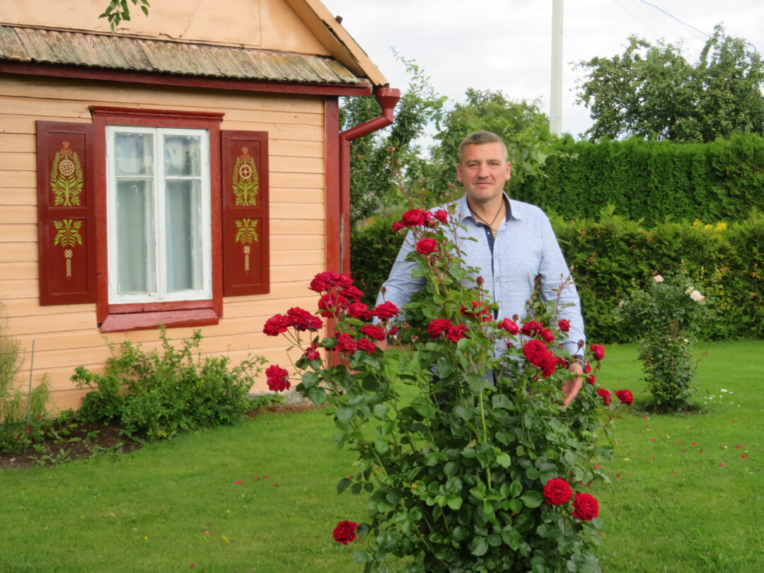 Meilę gėlėms Arūnas paveldėjo iš močiutės. Šioje sodyboje ir jis bandė užveisti gėlyną, kol suprato, kad apie kiekvieną augalą reikia atskirai išmanyti. Nejučia apsistojo prie rožių, nes patiko raudoni jų žiedai. „Vieną nusipirkau, kitą… Pernai matau, kad nebespėju, reikia apleisti žvejybą. Šįmet žadėjau naujų rožių nebepirkti, bet nusipirkau dar… 30. Kitais metais panaikinsiu daržą ir dar pirksiu“, – apie svajonę sodybą paversti ištisu rožynu kalbėjo šeimininkas.