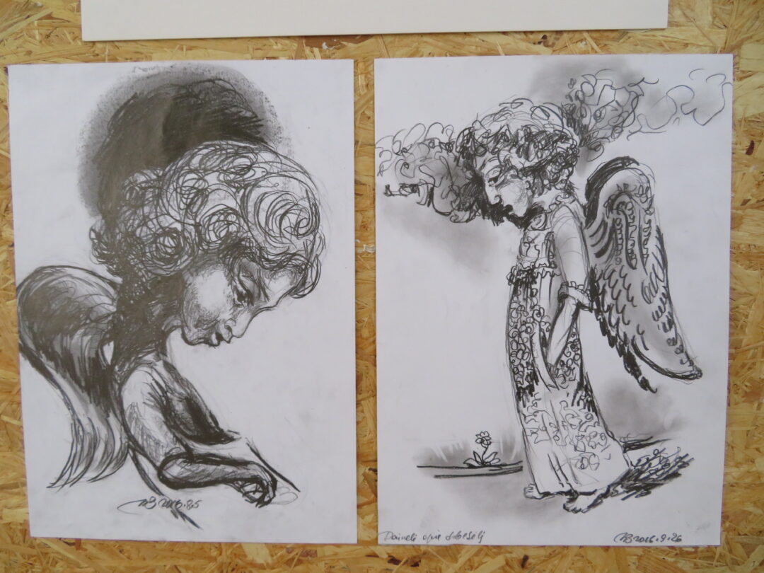 Dabar jokio darbo, tik tinginiavimas. Yra nuotaika – piešiu, jos nėra – kūrybiniais darbais neužsiimu. Jokios prievartos. Vaikai – Rūta, Jonė ir Vilmantas – pasirinko menininkų profesijas ir gyvena užsienyje.