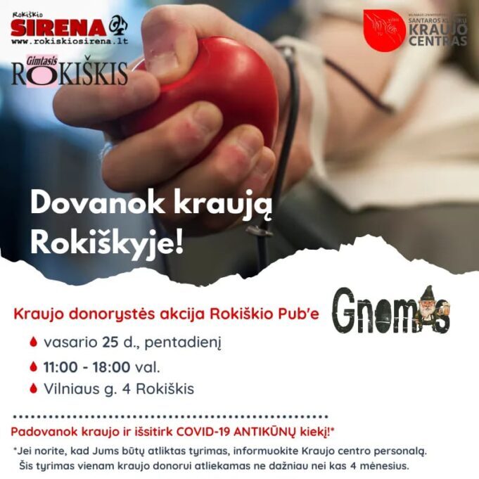 Kraujo paaukojęs donoras vietoj įprastos atminimo dovanėlės gali pasirinkti antikūnų tyrimą. „Tyrimas atliekamas pilnai vakcinuotiems arba COVID infekcija persirgusiems donorams. Apie tai reikia informuoti mūsų personalą atvykus į akcijos vietą. Tyrimų atsakymus bus galima pasitikrinti jau po kelių dienų portale viva.santa.lt, o kilus klausimų kreiptis el. paštu tavokraujas@santa.lt“, – tikina V. Strakšytė.