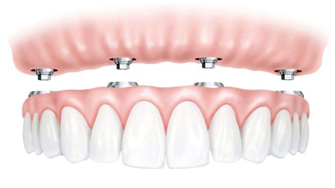 „All-on-4®“ implantacija –  tai unikalus dantų atkūrimo metodas, kurį naudojant visi vieno žandikaulio dantys atkuriami tik ant 4 implantų. Implantacijos metu, į bedantį žandikaulį yra įsriegiami 4 dantų implantai, ir ant jų tvirtinamas fiksuotas dantų protezas.