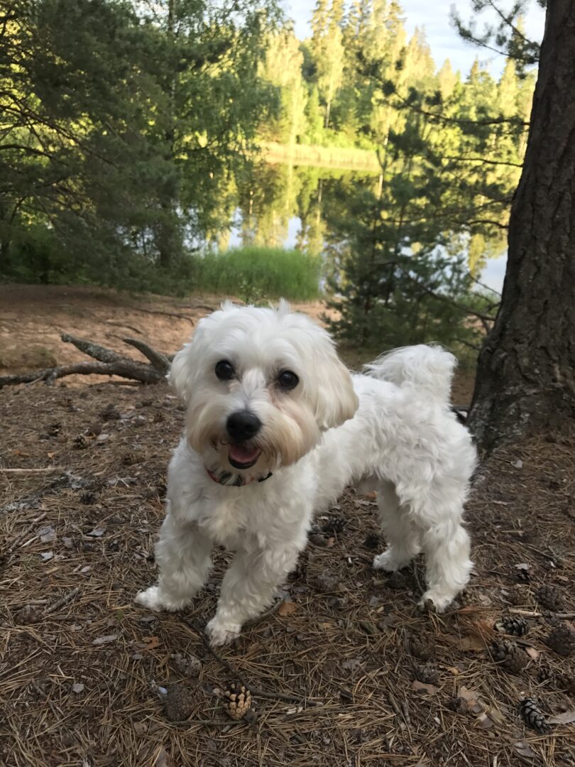 Smiltei 12 metų, sveria 2 kg. Kerpame 1–2 kartus per mėnesį. Šios veislės šunys nesišeria, tik juos reikia šukuoti, prausti (bent kartą per 10 dienų). Anksčiau kirpdavome Kaune. Toji meistrė ruošdavo šunis ir parodoms, todėl kainos ten aukštesnės nei Utenoje ar Panevėžyje, Rokiškyje. Kartais apdailinu pati. Kirpykloje ją palikdavome, nes be šeimininkų ji apsiramina. Labai nustebina Smiltės reakcija po procedūrų – džiaugiasi kaip vaikas, šoka aukštyn, kabinasi. Mielas, atsidavęs, mylintis gyvūnas. Nepasirenka vadu vieno šeimos nario, neagresyvus, neskalija, neloja be reikalo. Jei sode įgelia skruzdė, tai inkščia ir dejuoja. Į lauką vedame tik vasarą, nes kartą žiemą, atsisėdusi ant pusnies, peršalo ir užpuolė pūslės uždegimas, gydėme bruknių arbata. Mėgsta dėvėti aksesuarus – jų pasiuvu, numezgu, nuperku. Bandėme apauti ir batukus, bet jai nepatiko, stovėjo tarsi suakmenėjusi. Miega ant šilkinės pagalvėlės.