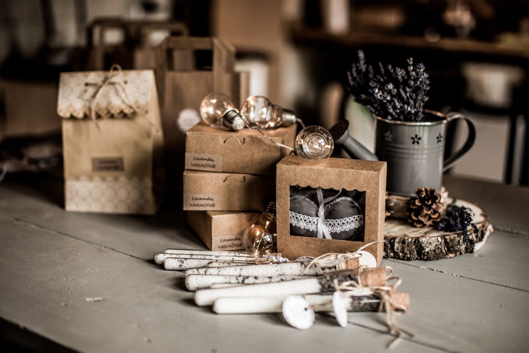 Atrodo, „Levandų Vanagynės“ laukuose ką tik mėlynavo levandos, kvepėjo čiobreliais, ir štai – jau kalėdiškai išpuoštos eglutės, paberta kankorėžių, o ant stalo rikiuojasi levandų pagalvėlės šventinėse pakuotėse ir vonios druska su levandų eteriniais aliejais bei žiedais. „Viskas padaryta mūsų rankomis. Levandų pagalvėles, kaip mūsų skiriamąjį ženklą, jau daug kas žino, o štai levandų vonios druska – šių metų naujiena. Manau, tai nuostabios, kvapnios ir mielos kalėdinės dovanėlės, bet tiek visokio darbo, kad neturėjau kada jų išpopuliarinti. Planavome su šiomis dovanėlėmis dalyvauti Rokiškio kalėdinėje mugėje dvare. Jos kainuoja po kelis eurus, bet į jas įdėta daug mūsų meilės, todėl tiks tiems, kurie nori dalintis meile, o ne priblokšti artimuosius įspūdingomis pirkinių kainomis“, – sako Kotryna.