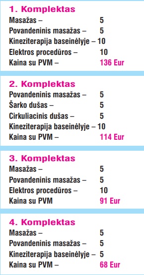 - gydomųjų procedūrų komplektai – jų siūlomi net keturi.