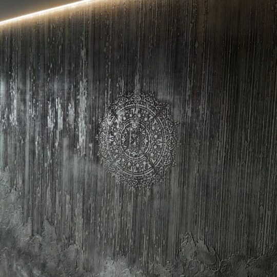 – Marmuro, rūdžių, vario oksidacijos efektų, taip pat ant sienų galima nupaišyti mandalas ar bet ką kita. Specialiais dažais, laku ar aliejumi išgaunamas akmens, metalo ar kitokio paviršiaus efektas. Eu išmokęs atlikti perlamutrinį „pasaulio žemėlapio“ efektą. Visuomet galima įterpti aukso, sidabro, blizgučių ar tai, ko tik norisi.