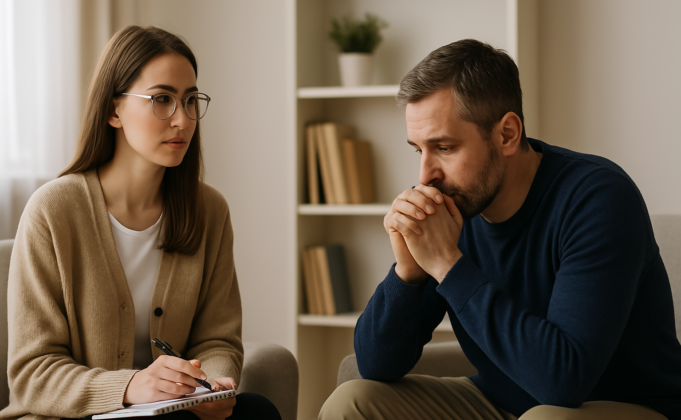 Reabilitacijos centro psichologas atlieka pirminį paciento emocinės būklės įvertinimą. Pokalbis dažnai vyksta ramiame, jaukiame kabinete, be spaudimo ar vertinimo. Specialistas padeda identifikuoti emocinius sunkumus, įvardyti jausmus, atrasti pacientui tinkamus resursus ir stiprybes.