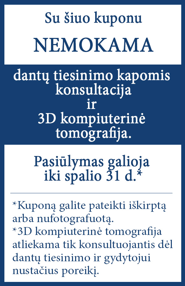 Dantų tiesinimas kapomis atliekamas modernioje Kupiškio odontologijos klinikoje, Gedimino g. 27