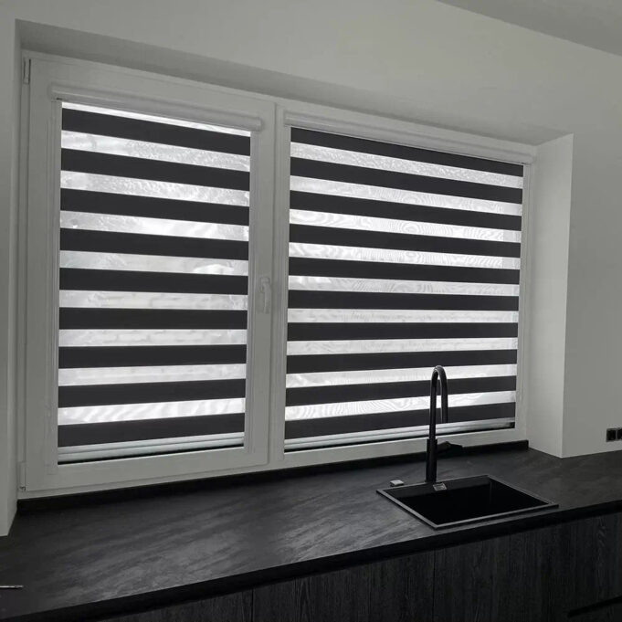 - Roletai Diena naktis. Šie roletai sudaryti iš dvigubo audinio su permatomomis ir nepermatomomis juostomis, leidžiančiomis reguliuoti šviesos srautą be poreikio kelti ar nuleisti roletą. Jie yra itin populiarūs dėl savo funkcionalumo ir modernios išvaizdos.
