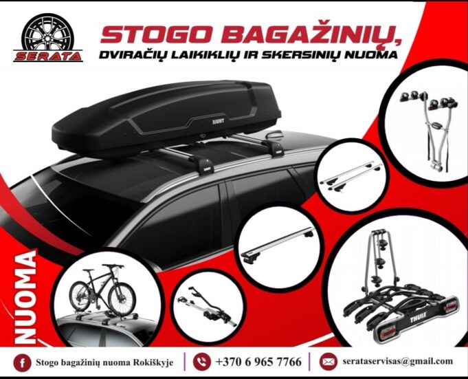 Daugiau informacijos apie nuomojamas stogo bagažines, laikiklius, dviračių platformas galite sužinoti telefonu +370 696 57 766, feisbuko puslapyje Stogo bagažinių nuoma Rokiškyje arba apsilankę pačioje MB „Serata“, Žemaitės g. 11.