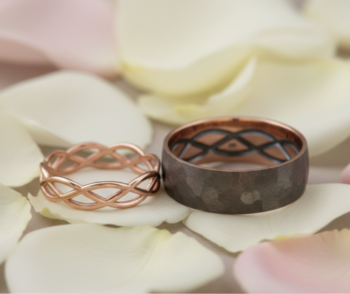 Taip pat verta pagalvoti apie žiedų derinimą tarpusavyje. Nors madinga, kad vyro ir moters vestuviniai žiedai būtų skirtingi, juos turėtų jungti bent viena bendra detalė: metalo spalva, tekstūra ar panaši graviravimo stilistika. Beje, graviravimas 2026-aisiais taip pat evoliucionavo – dabar lazeriu galima išgraviruoti net jūsų balso bangos įrašą, piršto atspaudą ar AI sugeneruotą unikalų simbolį, kuris matomas tik po didinamuoju stiklu. Tai suteikia papuošalui intymumo, kurį žinosite tik jūs du.