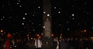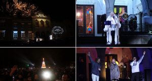 Sužibo Advento vainikas: prie Nepriklausomybės paminklo – žmonių dovanotų eglučių vainiką...