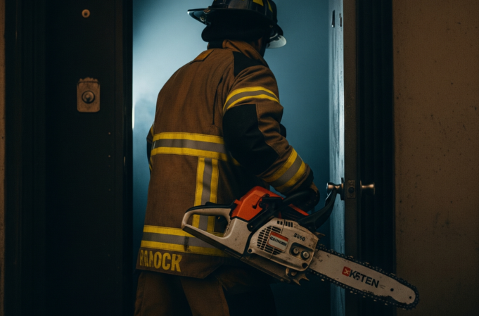 Liepos 4 d. 03.10 val. Rokiškyje, Taikos g., atvykus PGP ir ugniagesiams užvedus motorinį pjūklą, buto duris atidarė patys žmonės.