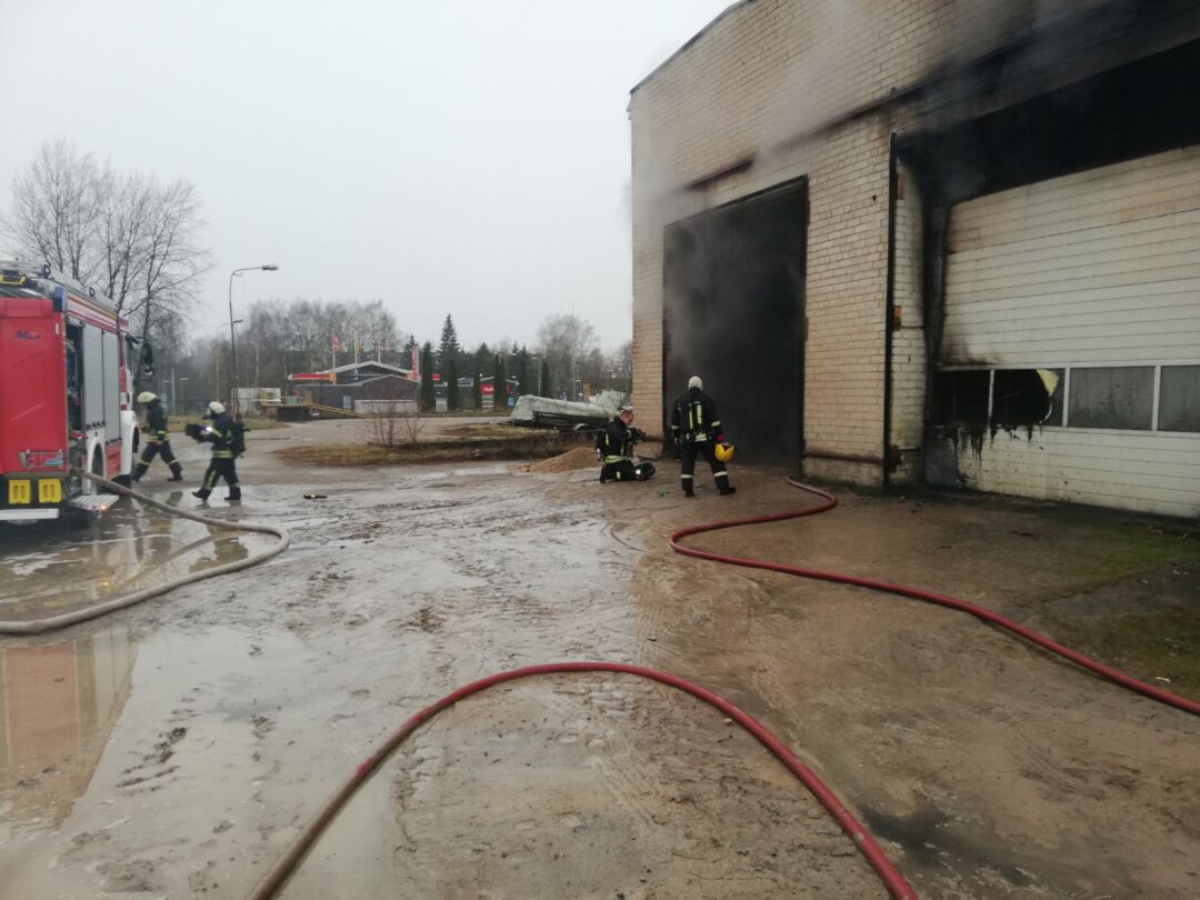 Gaisras UAB „Rokauta“ priklausančiame pastate