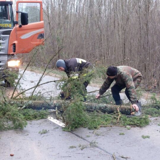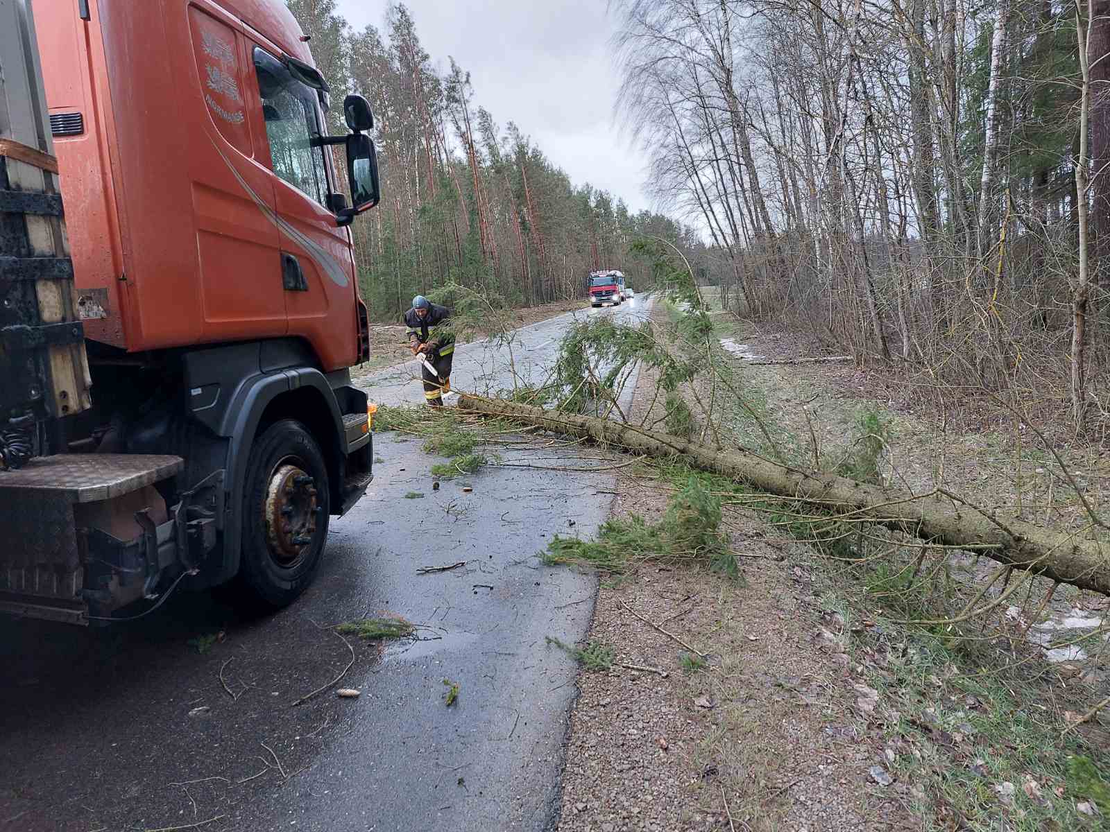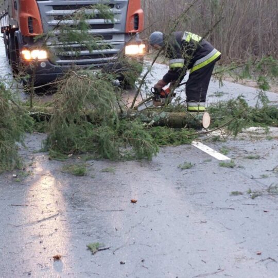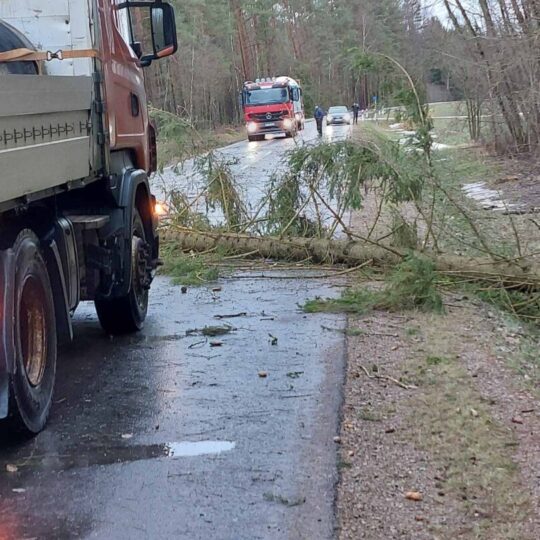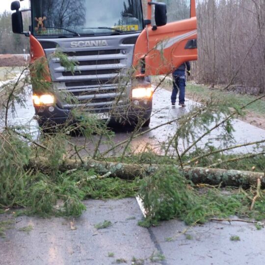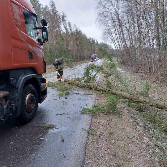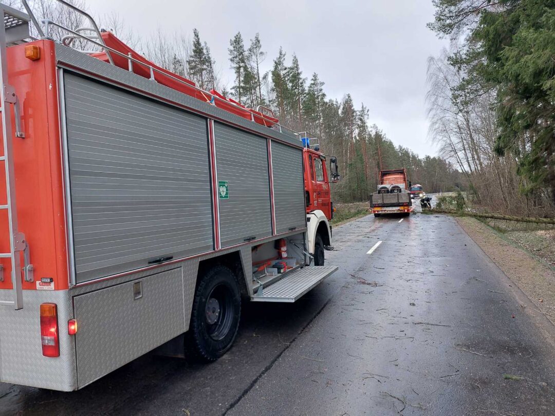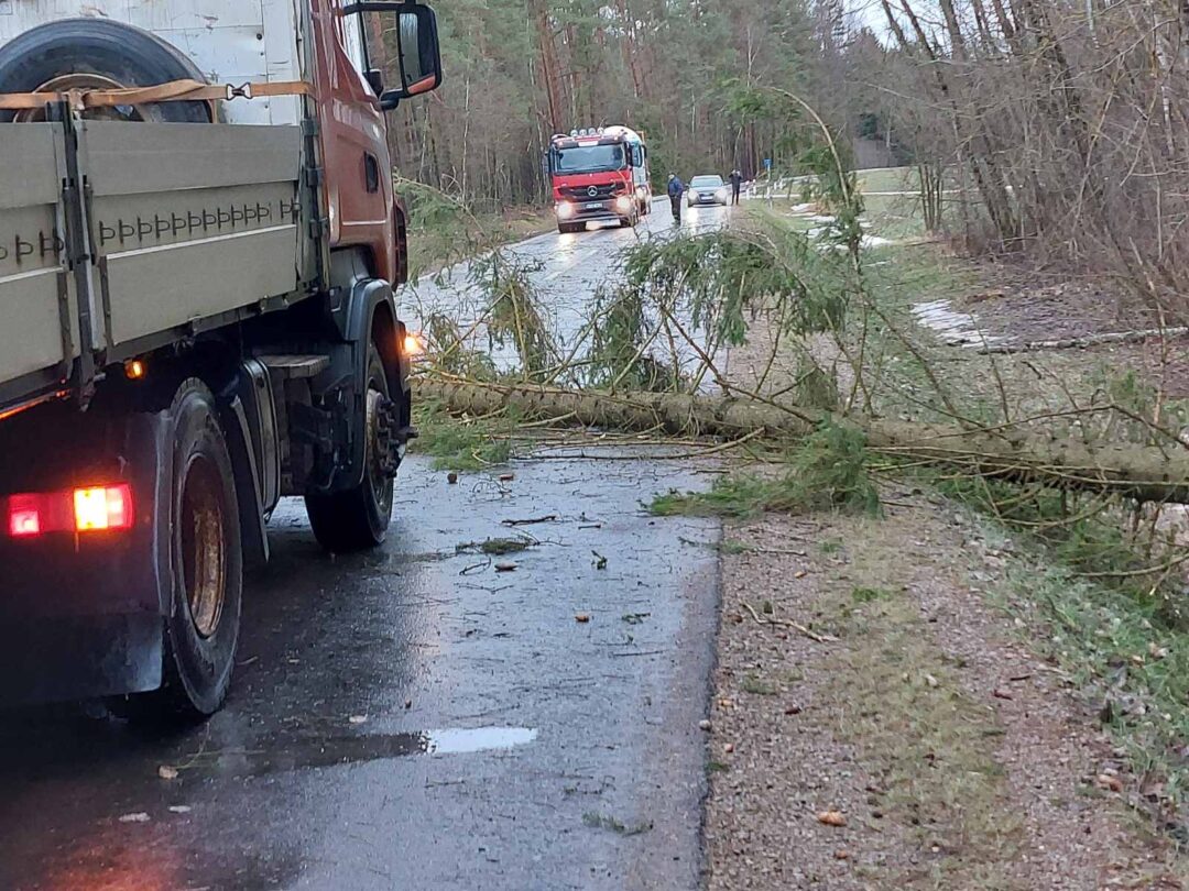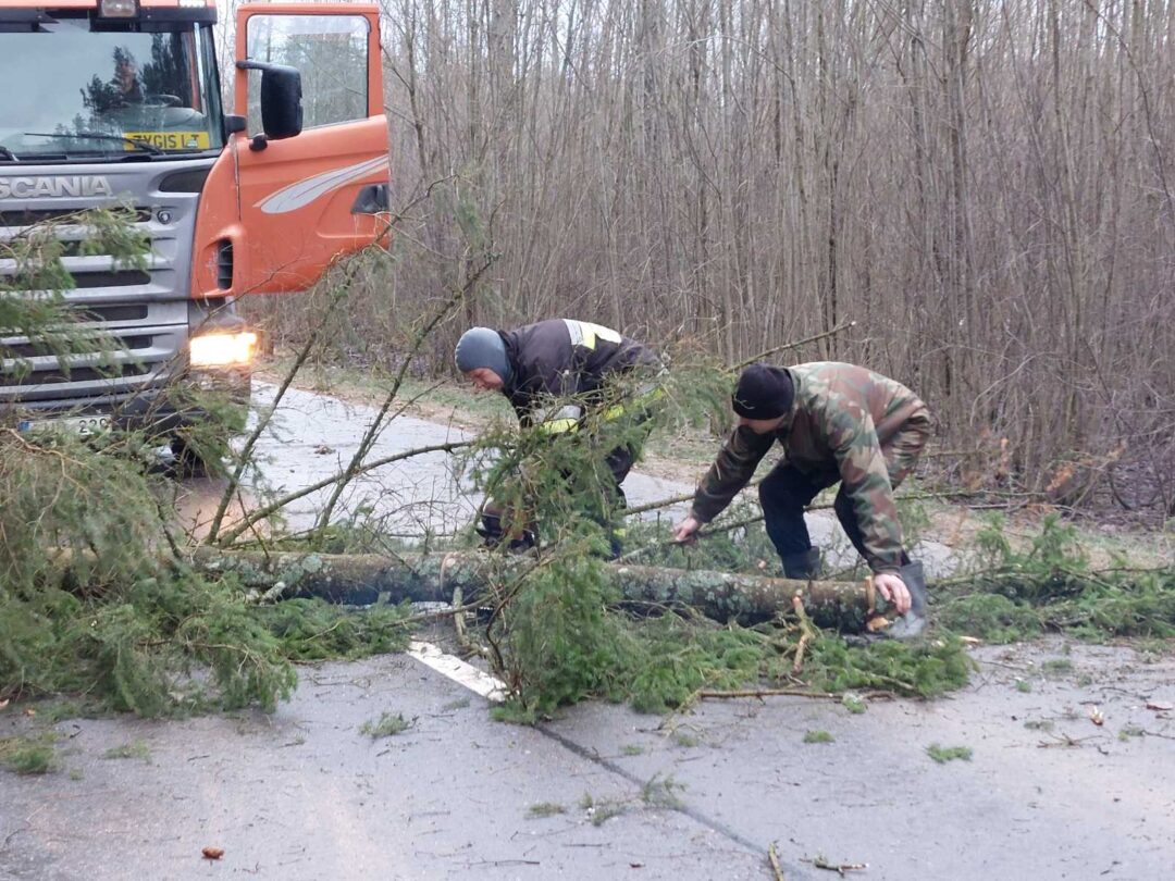 Stiprus vėjas visą naktį ir rytą neduoda ramybės gyventojams: skraido šiukšlės, laužomos šakos, plėšomi stogai. Su problema susidūrė ir keliaujantieji keliu Kamajai–Duokiškis – ryte kelią užtvėrė medis. Atskubėję gelbėtojai medį supjaustė ir kliūtį pašalino.