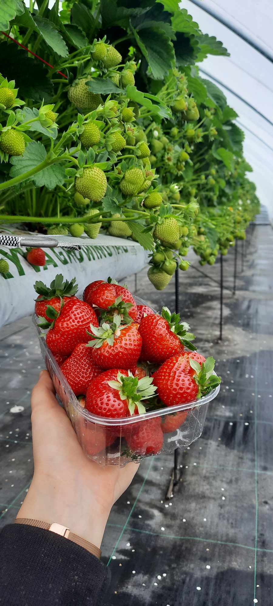 Prekybiniame vagonėlyje įsikūrusi Ingrida, paklausta, ar šalnos turėjo įtakos šiemetiniam braškių derliui, prisipažino, kad pirmąsias pražydusias braškes šalna pakando, bet jos vėl žydi ir derliaus iš laukų augintojai tikisi sulaukti apie Jonines – beveik mėnesiu vėliau negu pernai. Dabar Skeberdžiai prekiauja šiltnamyje užaugintomis uogomis. Jų pasisodino tiek, kiek telpa 10 arų. Pardavinėja šias braškes po 10 eurų už kilogramą, bet galima pirkti ir puskilograminiais indeliais.