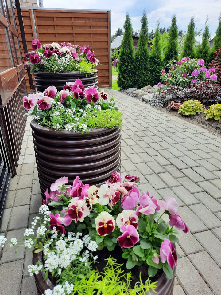 – Gėlyne daugiausia žydi hortenzijų, antroje vasaros pusėje atskleidžiančių visą grožį. Prie įėjimo turiu šešis gėlių vazonus. Derinu vazonuose ir gėlyne žydinčius augalus, nes man svarbu neapkrauti kiemo, neprisodinti per daug skirtingų gėlių. Mieliau renkuosi daugiau tos pačios rūšies augalų nei skirtingų. Saikas – svarbiausia.