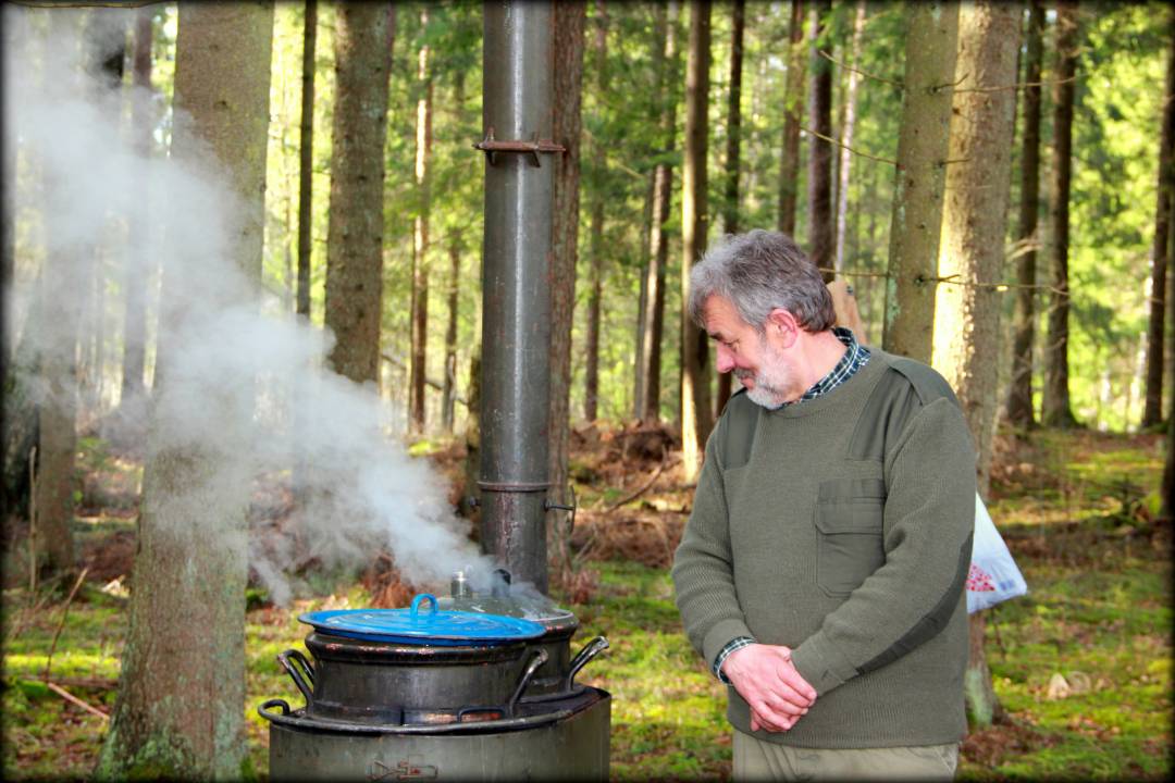 Miškasodis užbaigtas šilta vakariene: talkos simboliais – medinėmis liniuotėmis su dedikuotu užrašu, puikia nuotaika, gyvomis diskusijomis ir miškininkų suruoštomis vaišėmis.